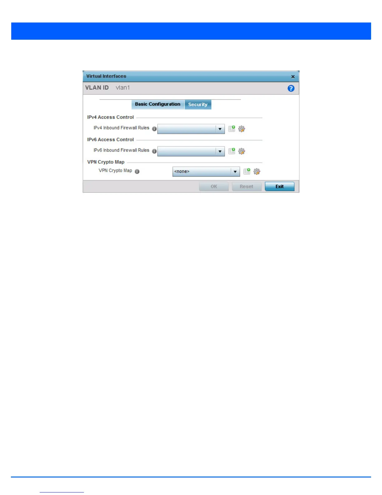 virtual interface configuration. Select the Create icon to define a new IPv6 firewall rule configuration or select the Edit