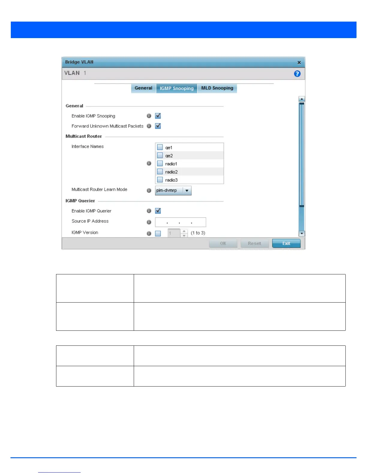 Enable IGMP Snooping Select this option to enable IGMP snooping. If disabled, snooping on this bridge VLAN