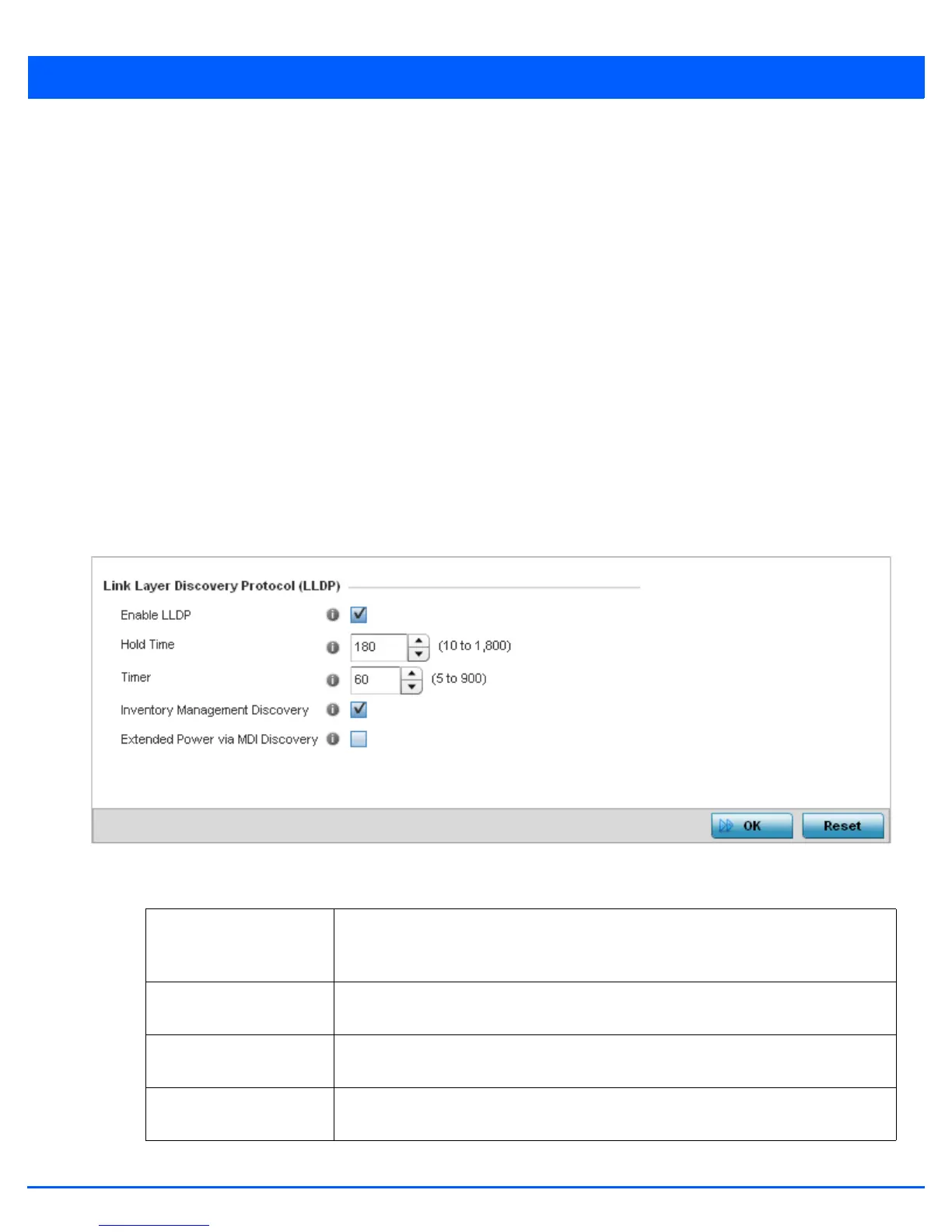 Enable LLDP Select this option to enable LLDP on the access point. LLDP is enabled by default When