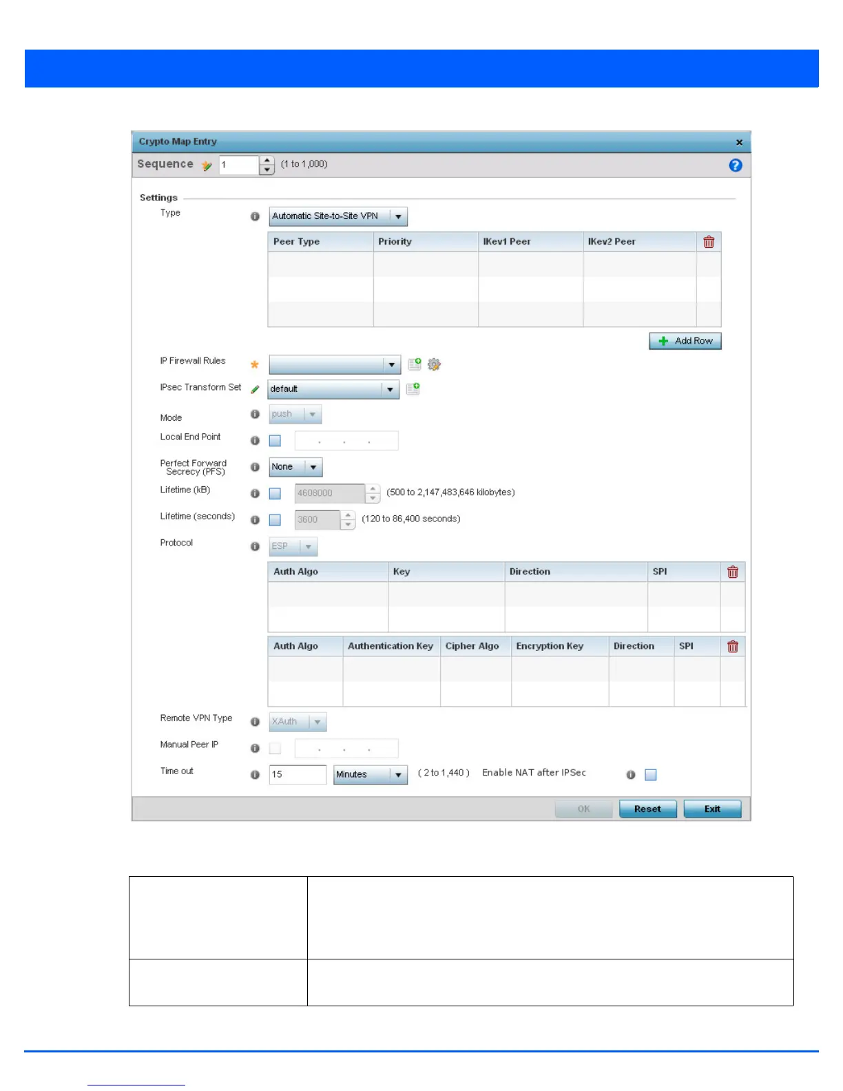 Figure 5-88 Profile Security - VPN Crypto Map Entry screen
