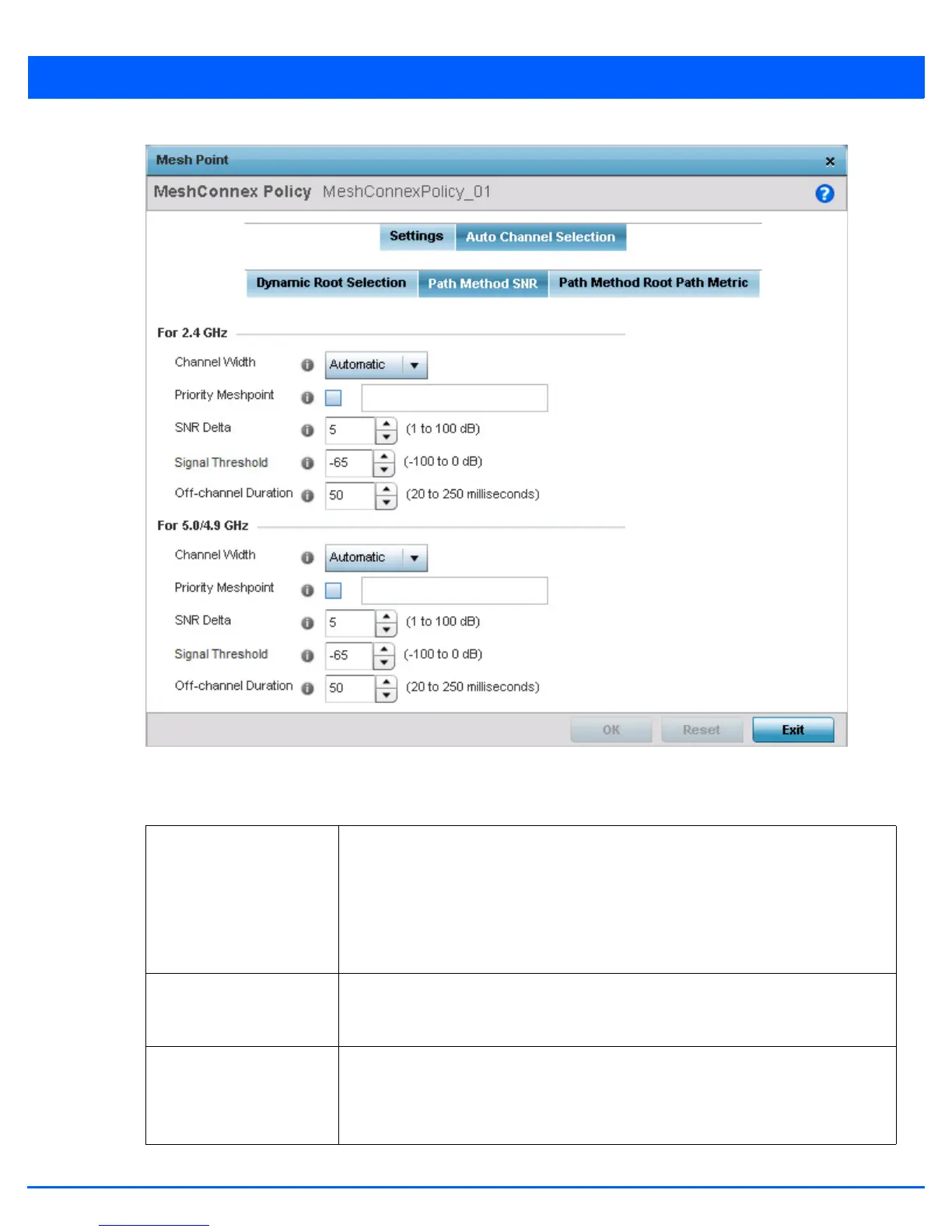 Priority Meshpoint Configure the mesh point monitored for automatic channel scan. This is the mesh point
