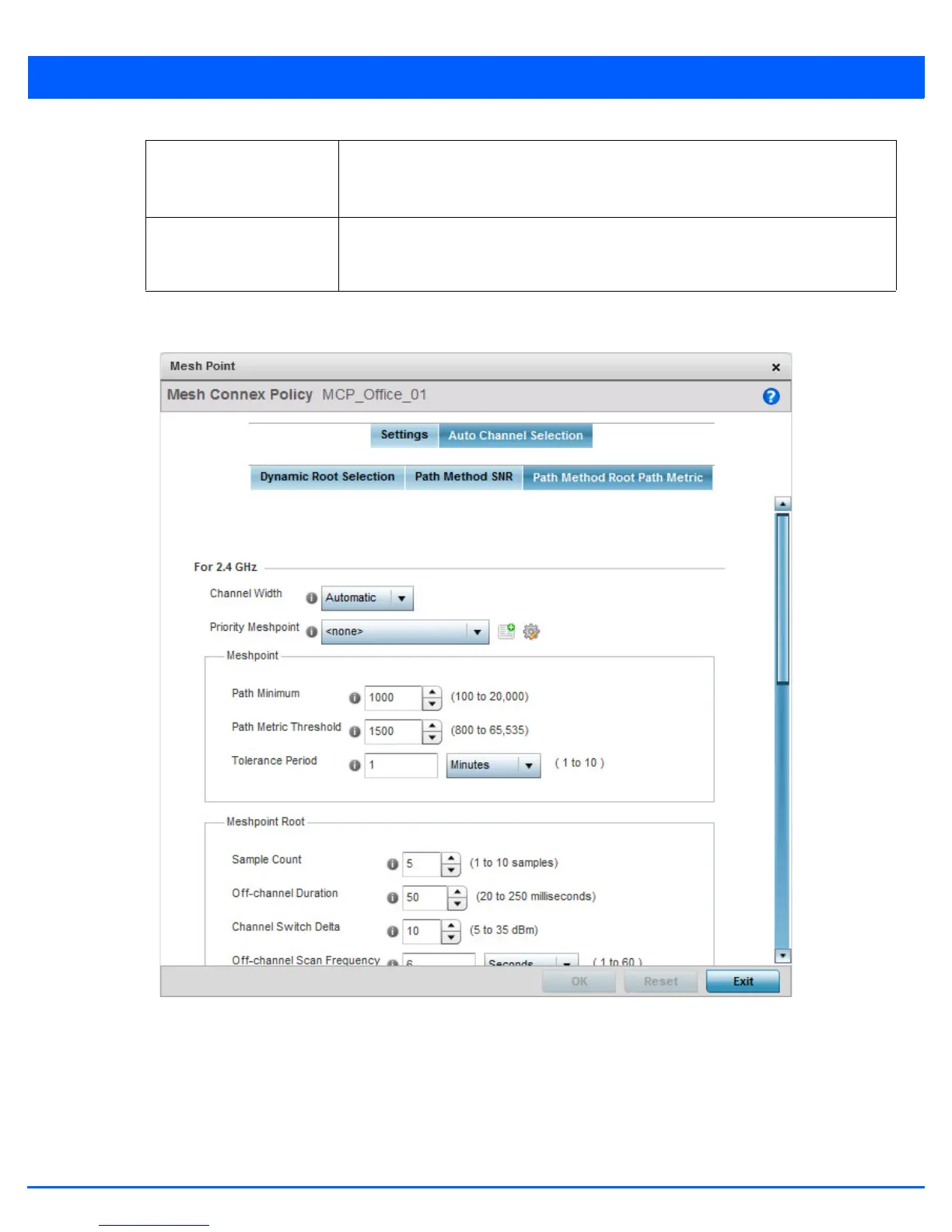 Figure 5-119 Mesh Point Auto Channel Selection Path Method Root Path Metric screen