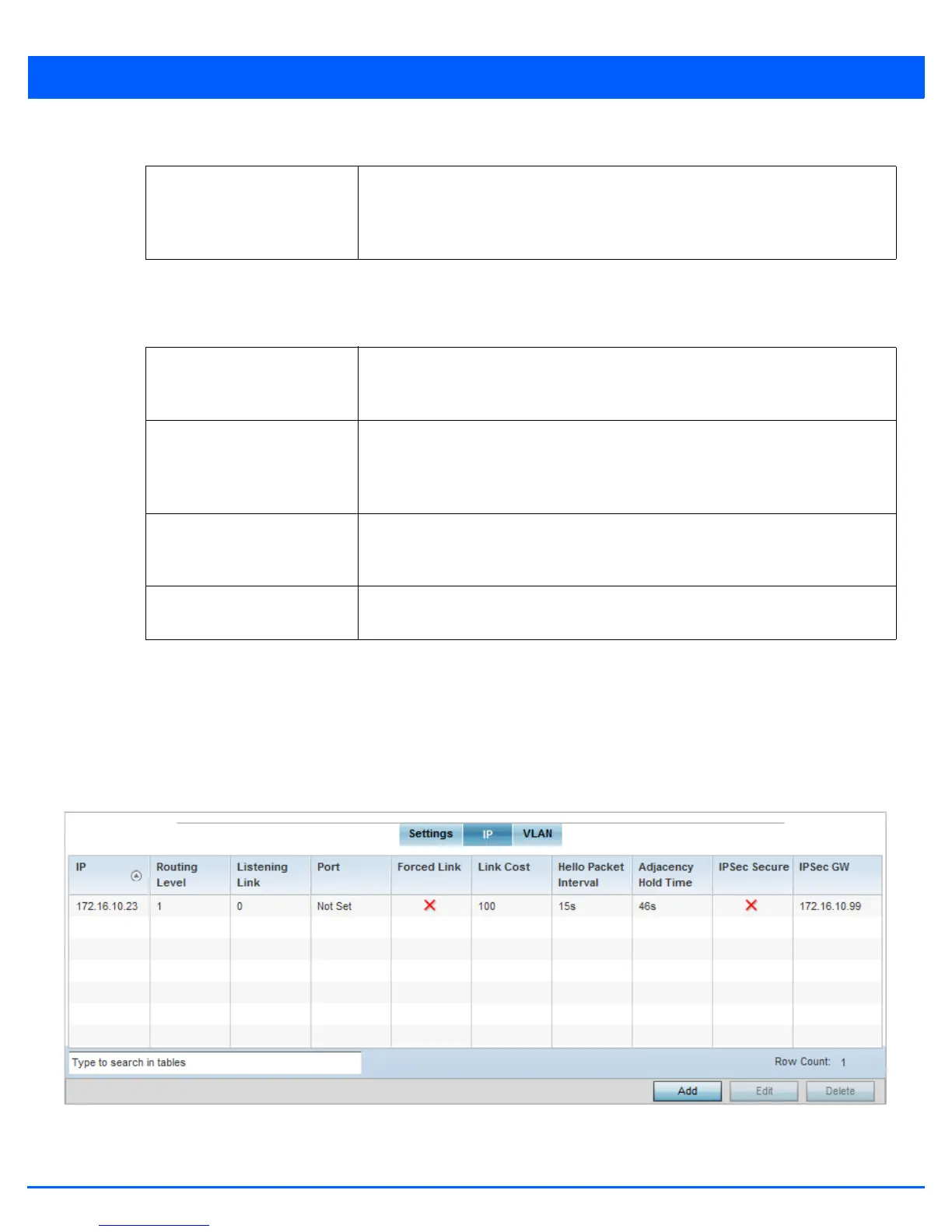 9. Select the IP tab to display the link IP network address information shared by the devices managed by the access point’s