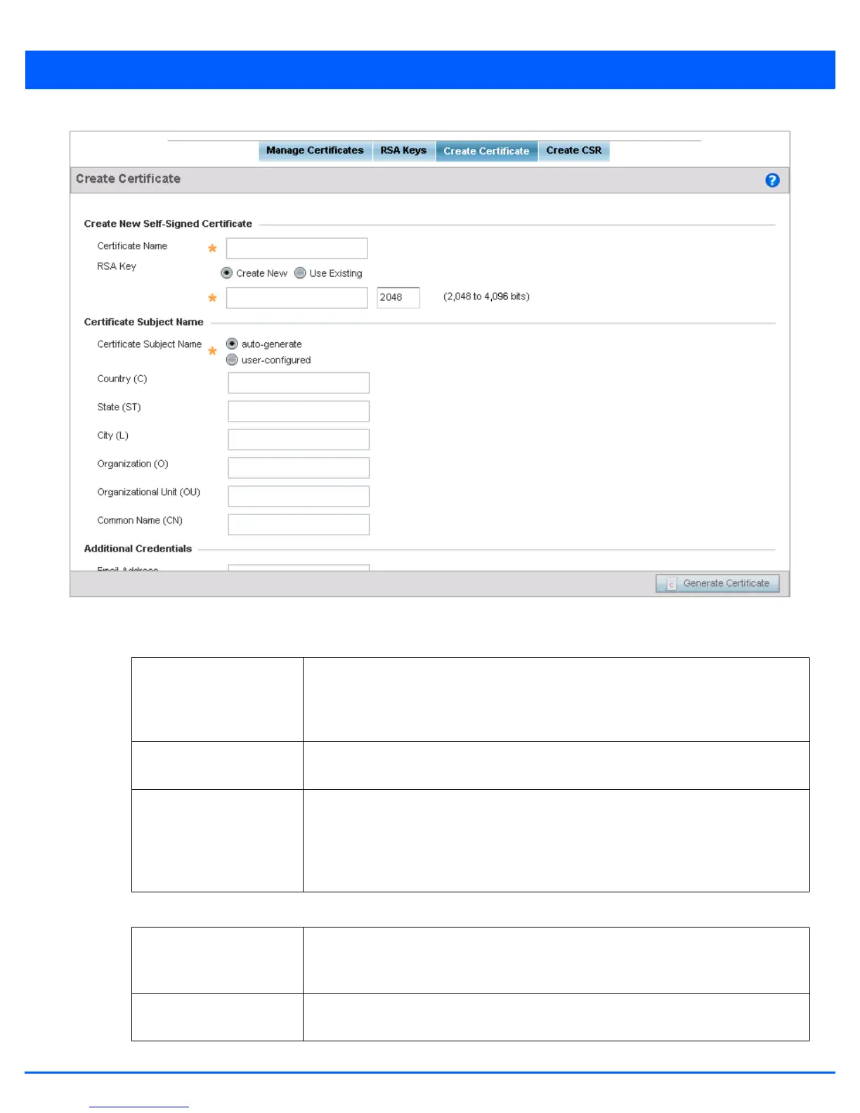 Certificate Subject Name Select either the auto-generate radio button to automatically create the certificate's
