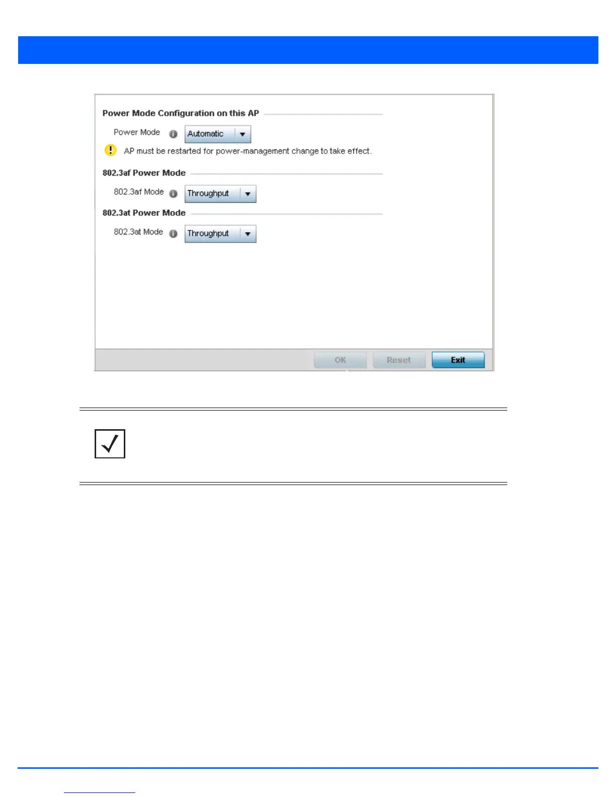a reset to implement the change. If 802.3at is selected, the access point assumes 23 - 26 watts are available.