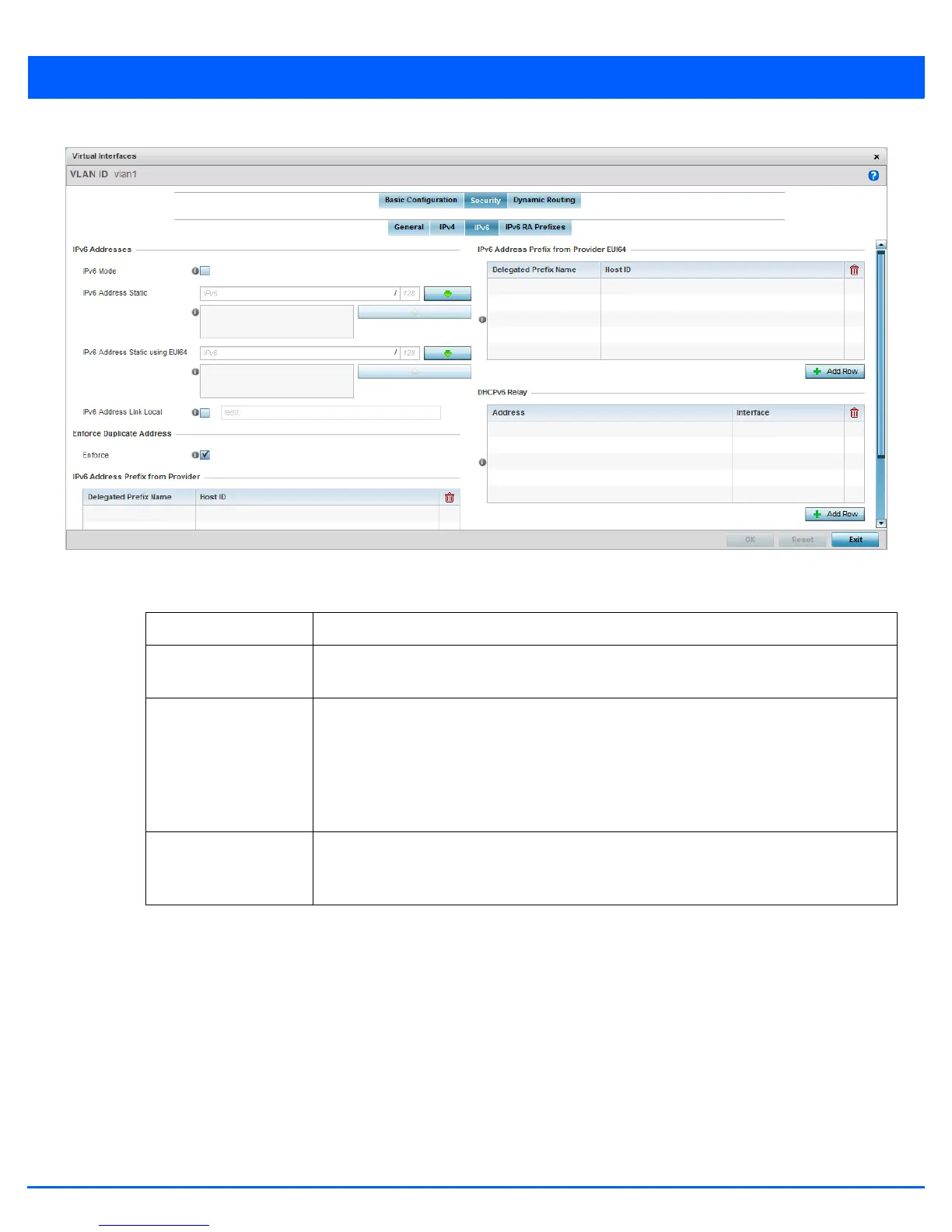 IPv6 Mode Select this option to enable IPv6 support on this virtual interface. IPv6 is disabled by default.