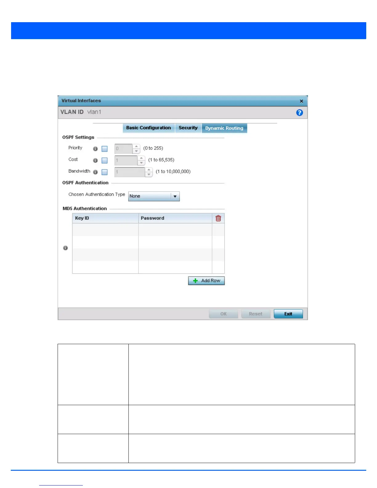 Cost Select this option to enable or disable OSPF cost settings. Use the spinner to configure a