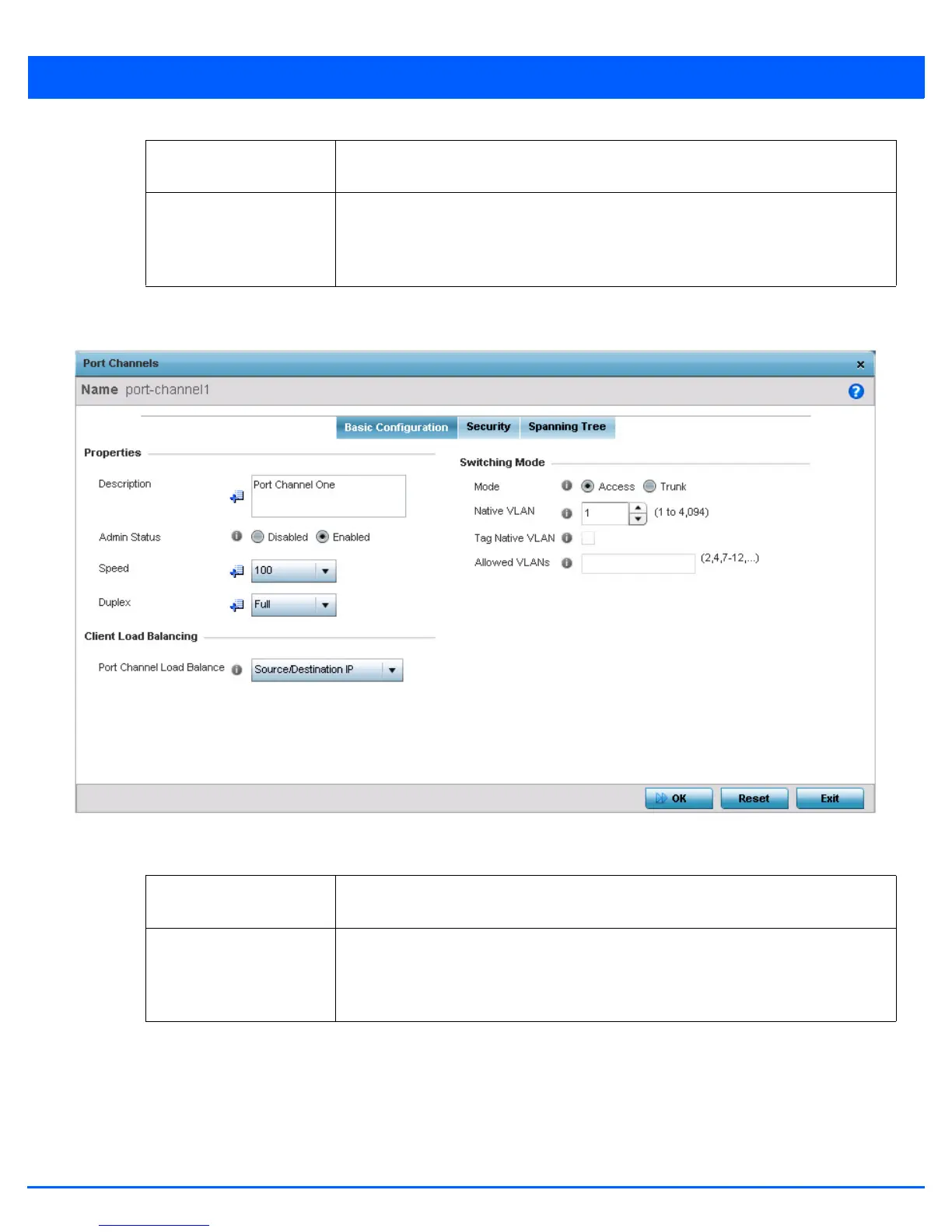 Description Enter a brief description for the port channel (64 characters maximum). The description