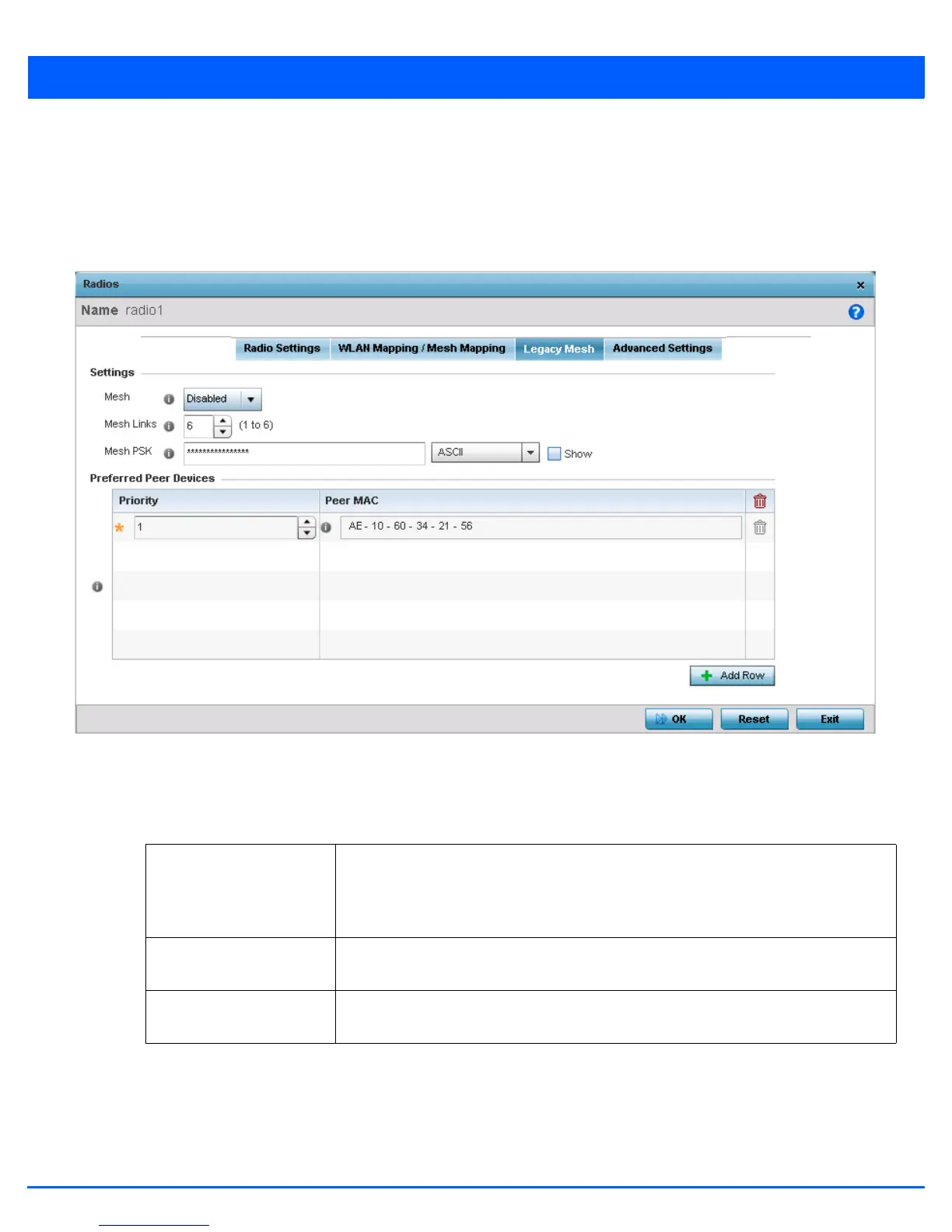 18. Refer to the Preferred Peer Devices table and select + Add Row to define MAC addresses representing peer devices