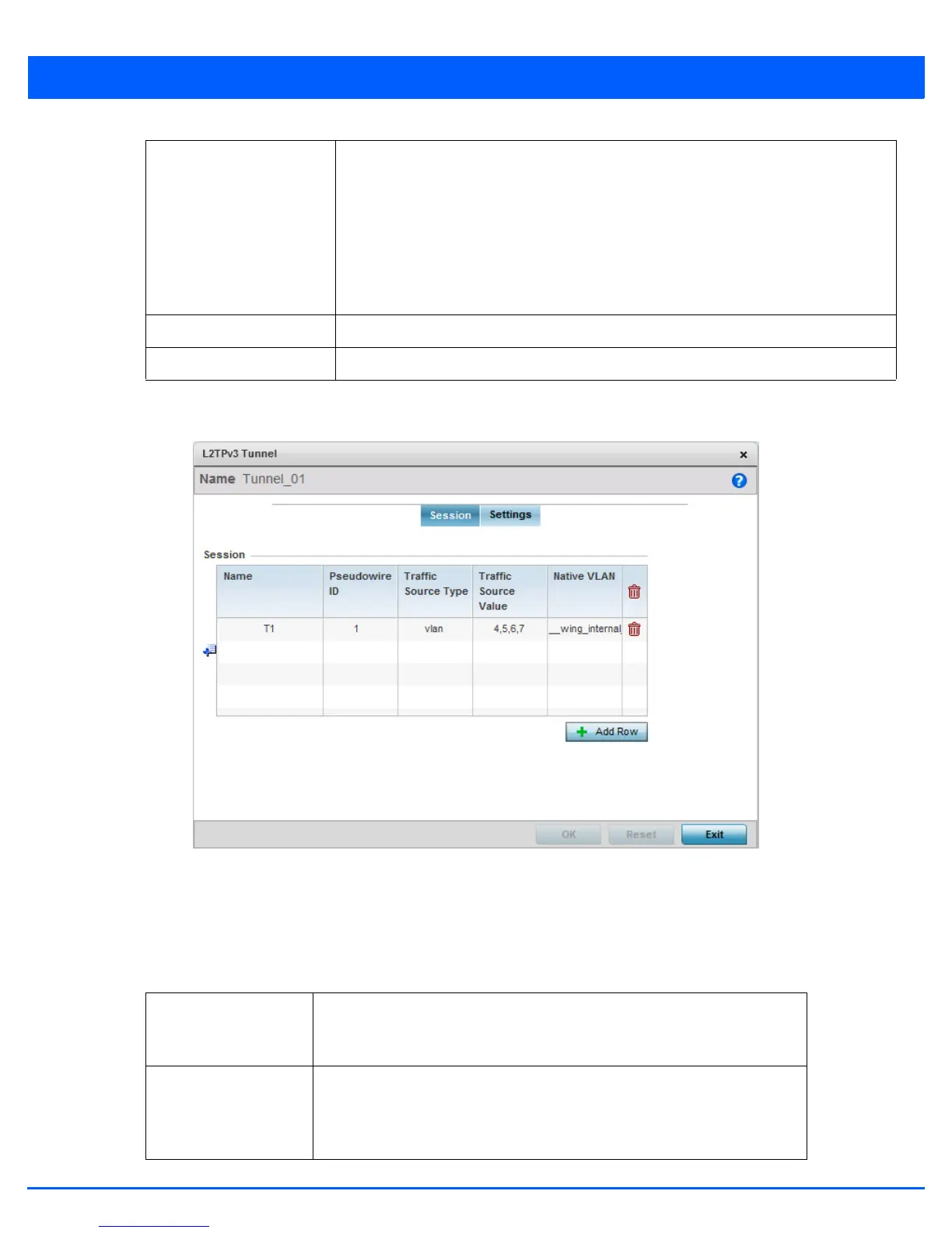 13. Select + Add Row to populate the table with configurable session parameters for this tunnel configuration.