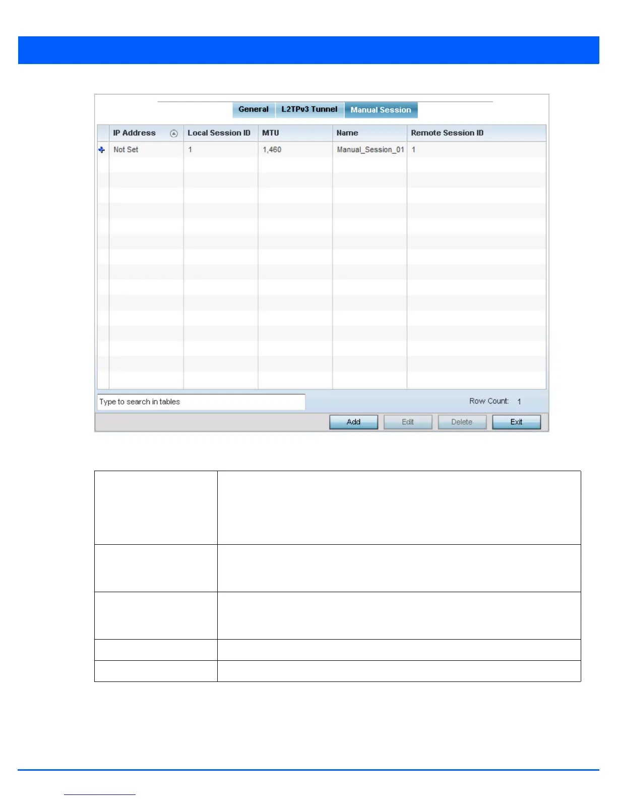 25. Select Add to create a new manual session, Edit to modify an existing session configuration or Delete to remove a