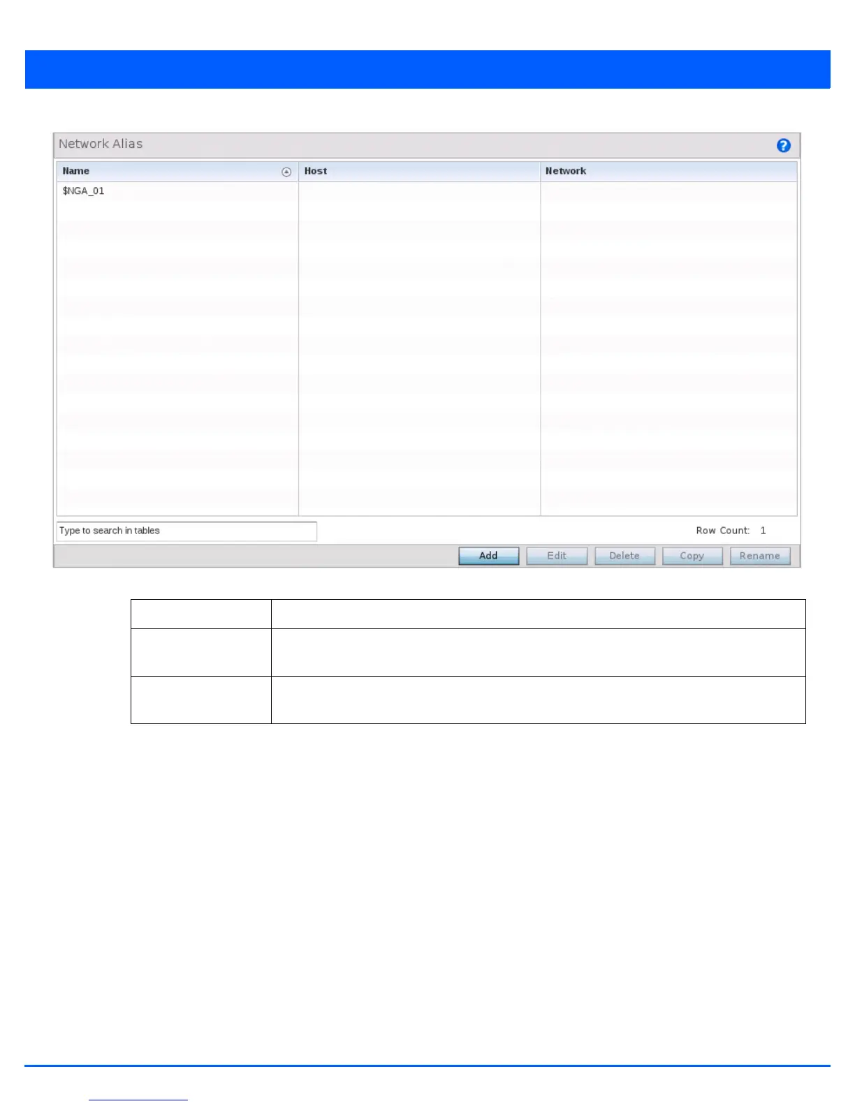 available. Select Add to create a new Network Group Alias. Copy to copy an existing policy or Rename to rename an