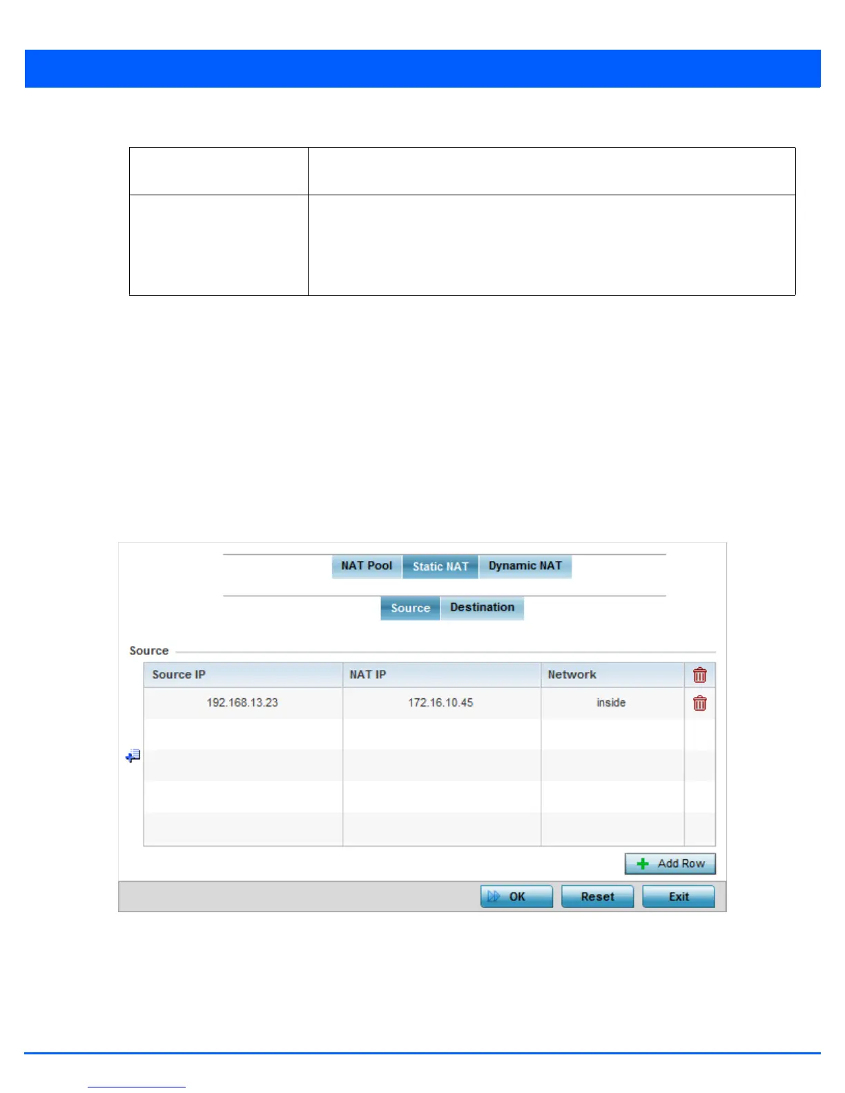 To map a source IP address from an internal network to a NAT IP address click the Add button.