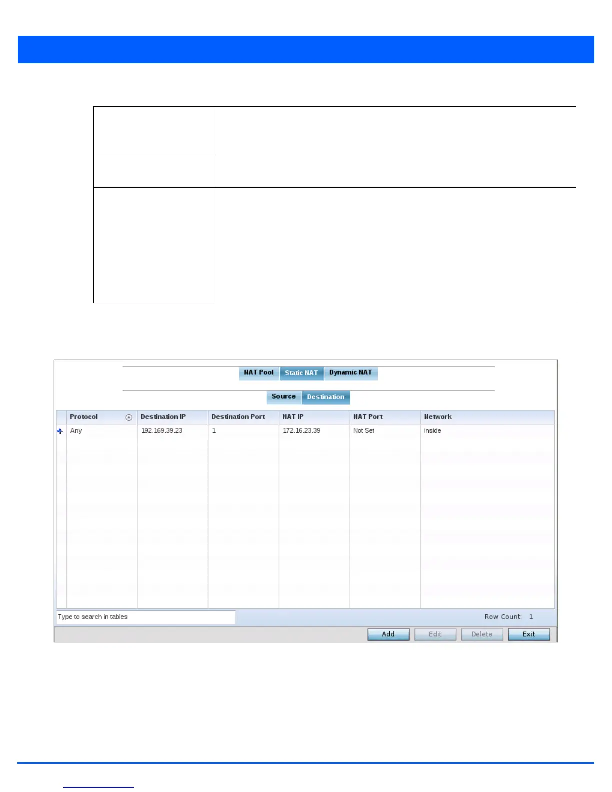 14. Select Add to create a new NAT destination configuration. or Delete to permanently remove a NAT destination. Existing