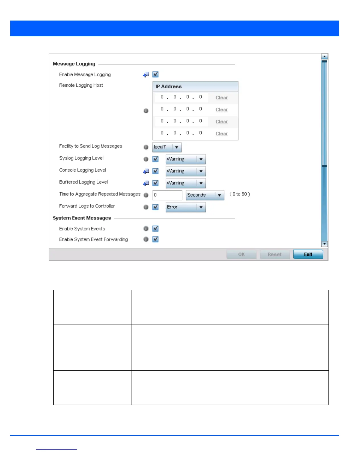 Remote Logging Host Use this table to define numerical (non DNS) IP addresses for up to three external