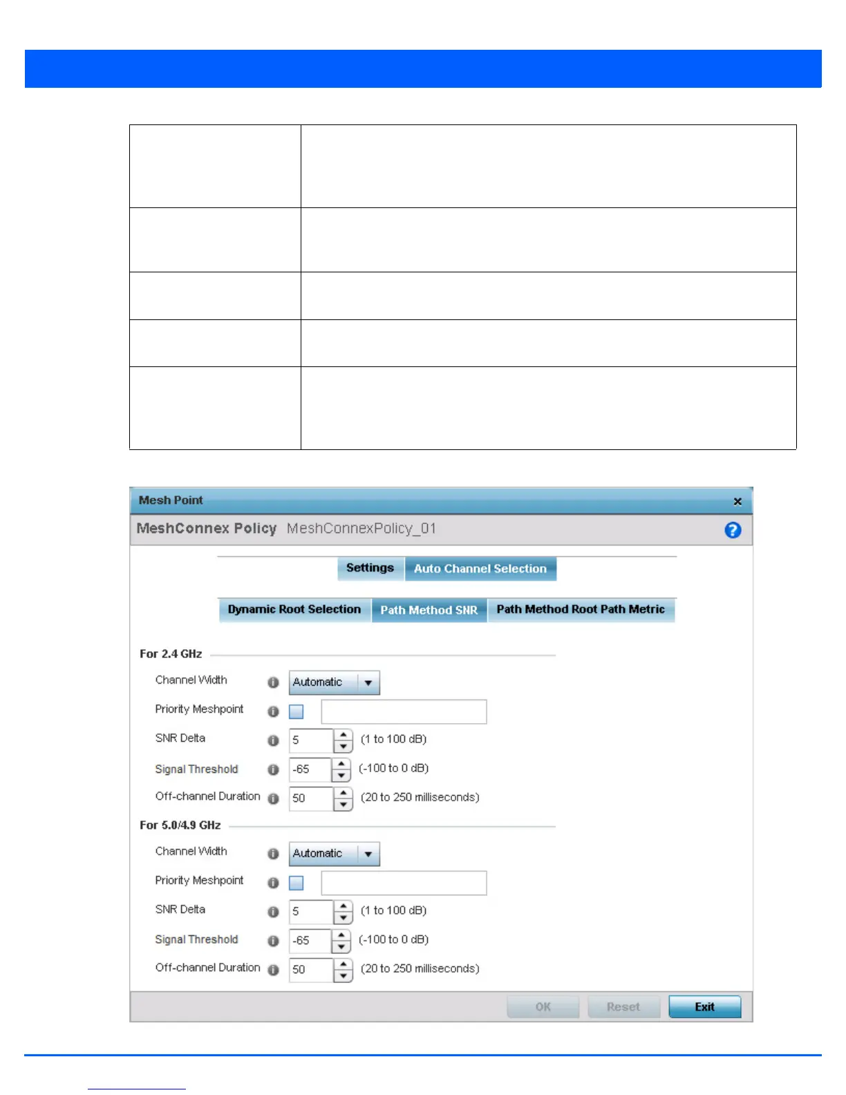 Priority Meshpoint Configure the mesh point to be monitored for automatic channel scan. This is the mesh
