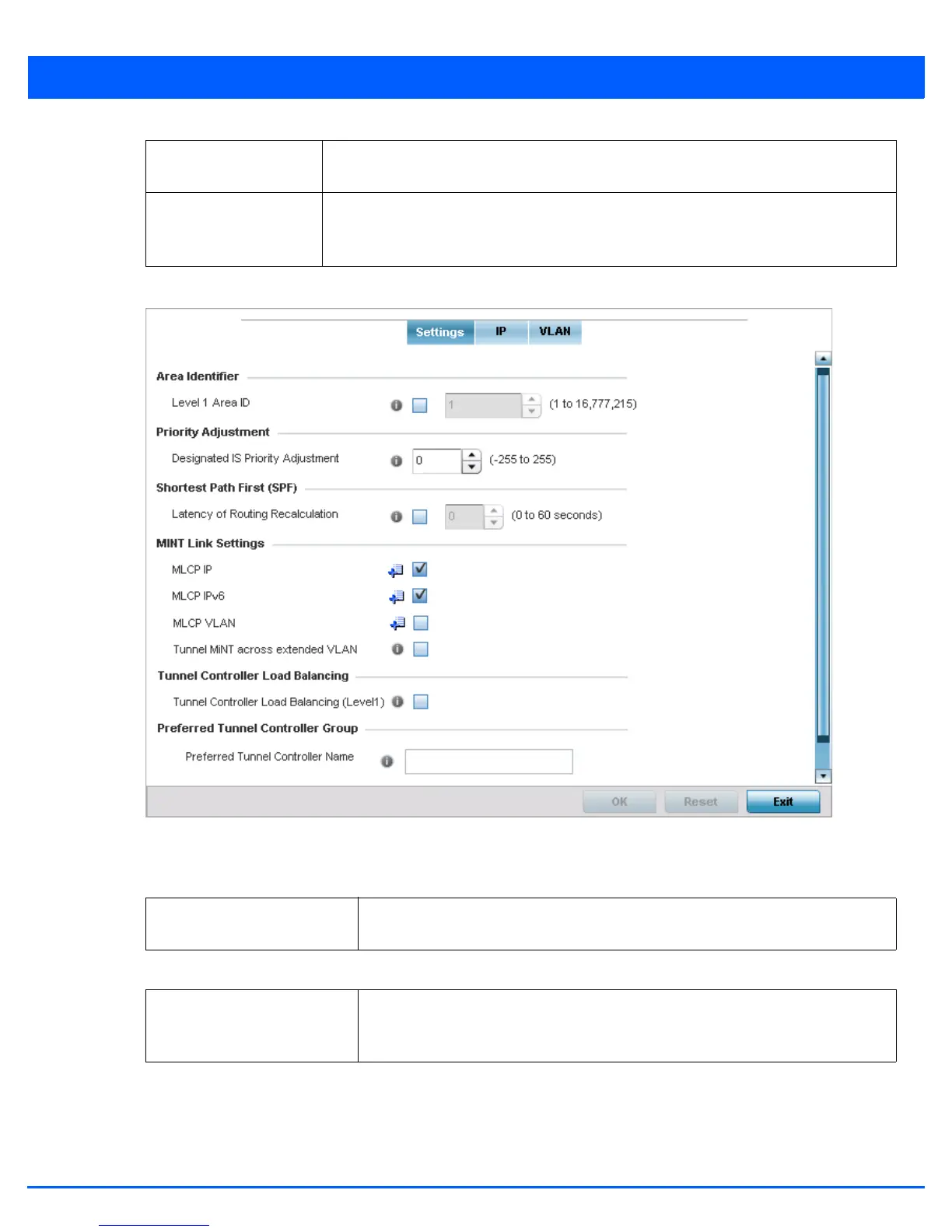 17. Refer to the Area Identifier field to define or override the Level 1 and Level 2 Area IDs used by the profile’s MINT