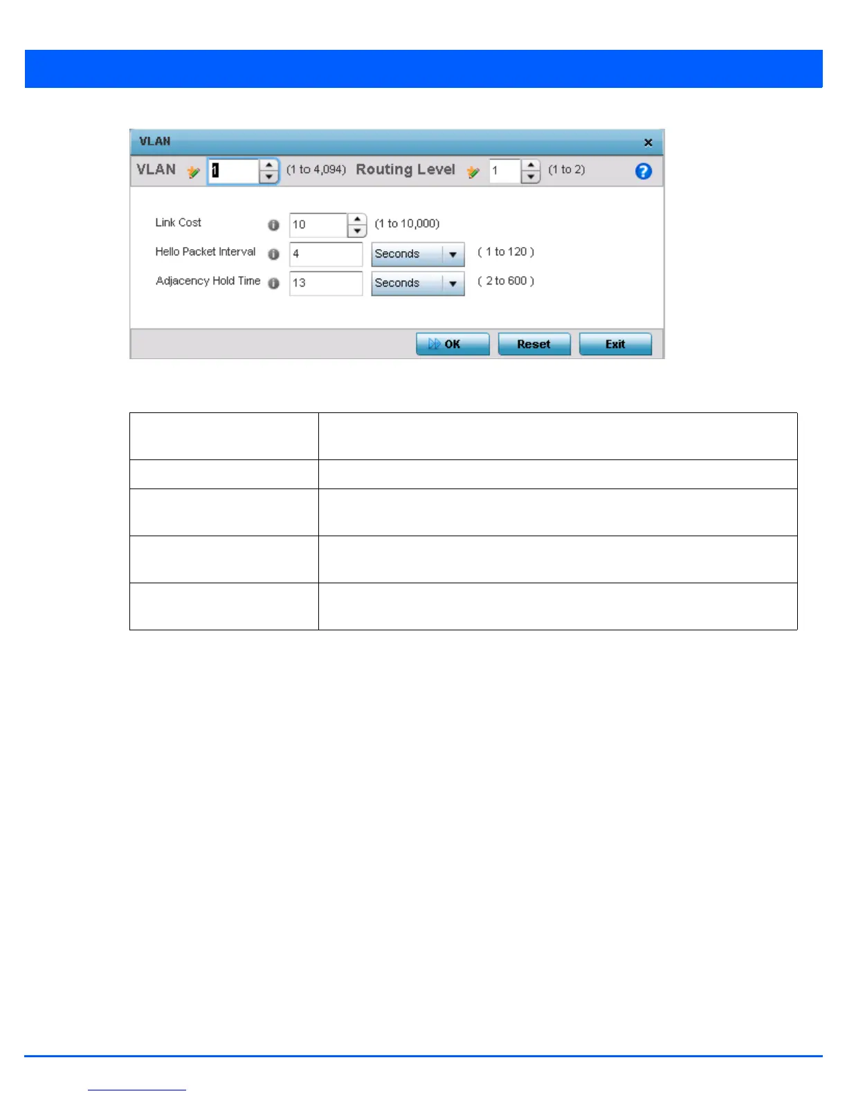 Link Cost Use the spinner control to define or override a link cost from 1 - 10,000. The default