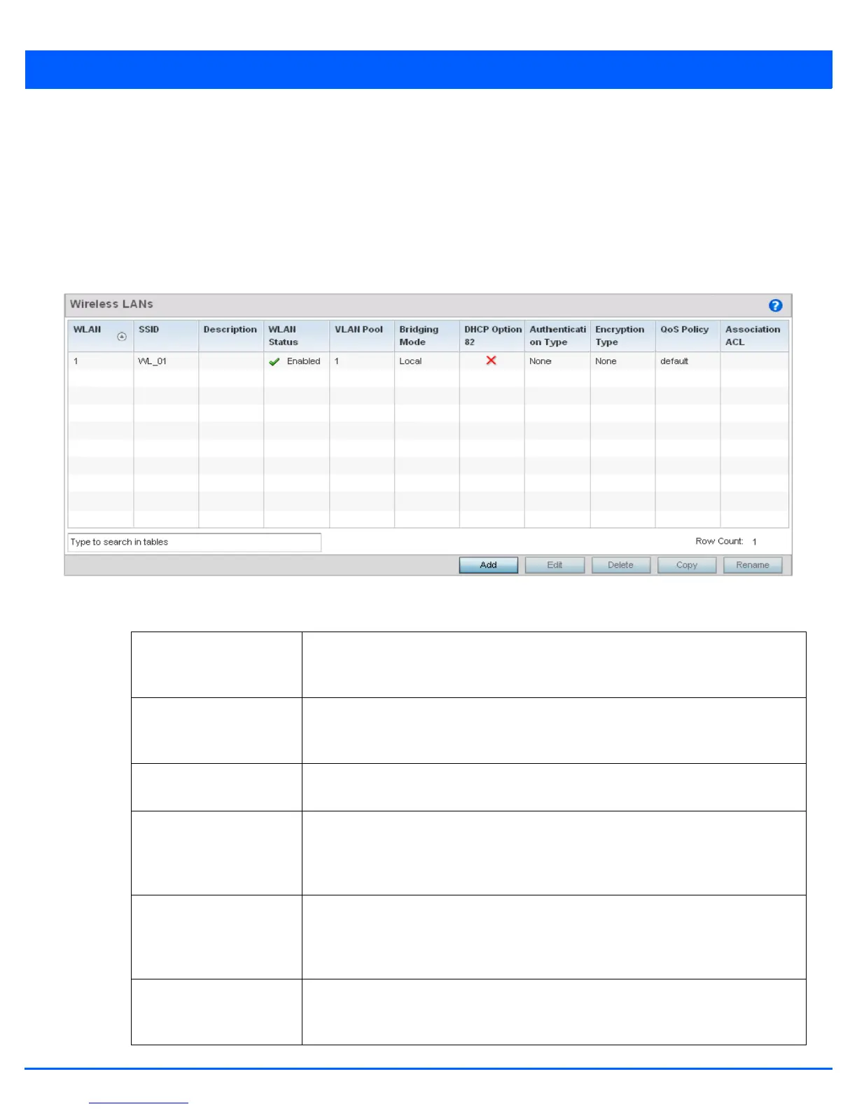 Description Displays the brief description assigned to each listed WLAN when it was either created