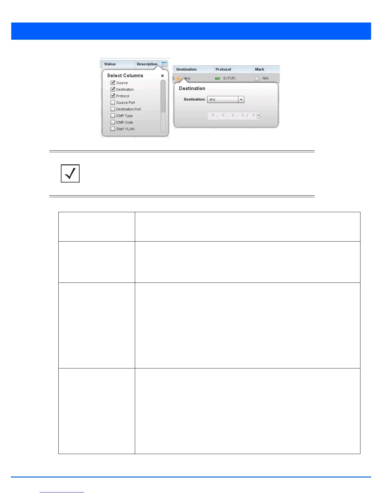 current settings adjusted by selecting that IP ACL’s column to display a pop-up to adjust