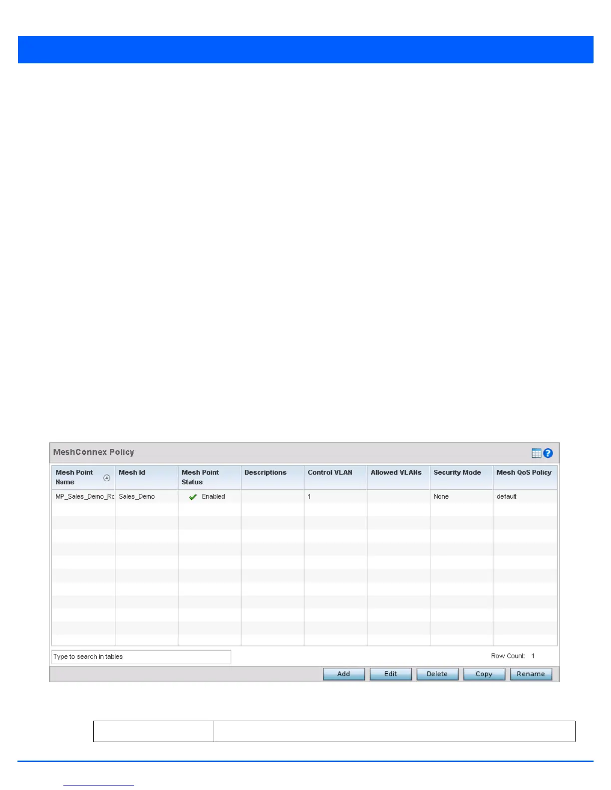 3. Select MeshConnex Policy to display existing MeshConnex policies.