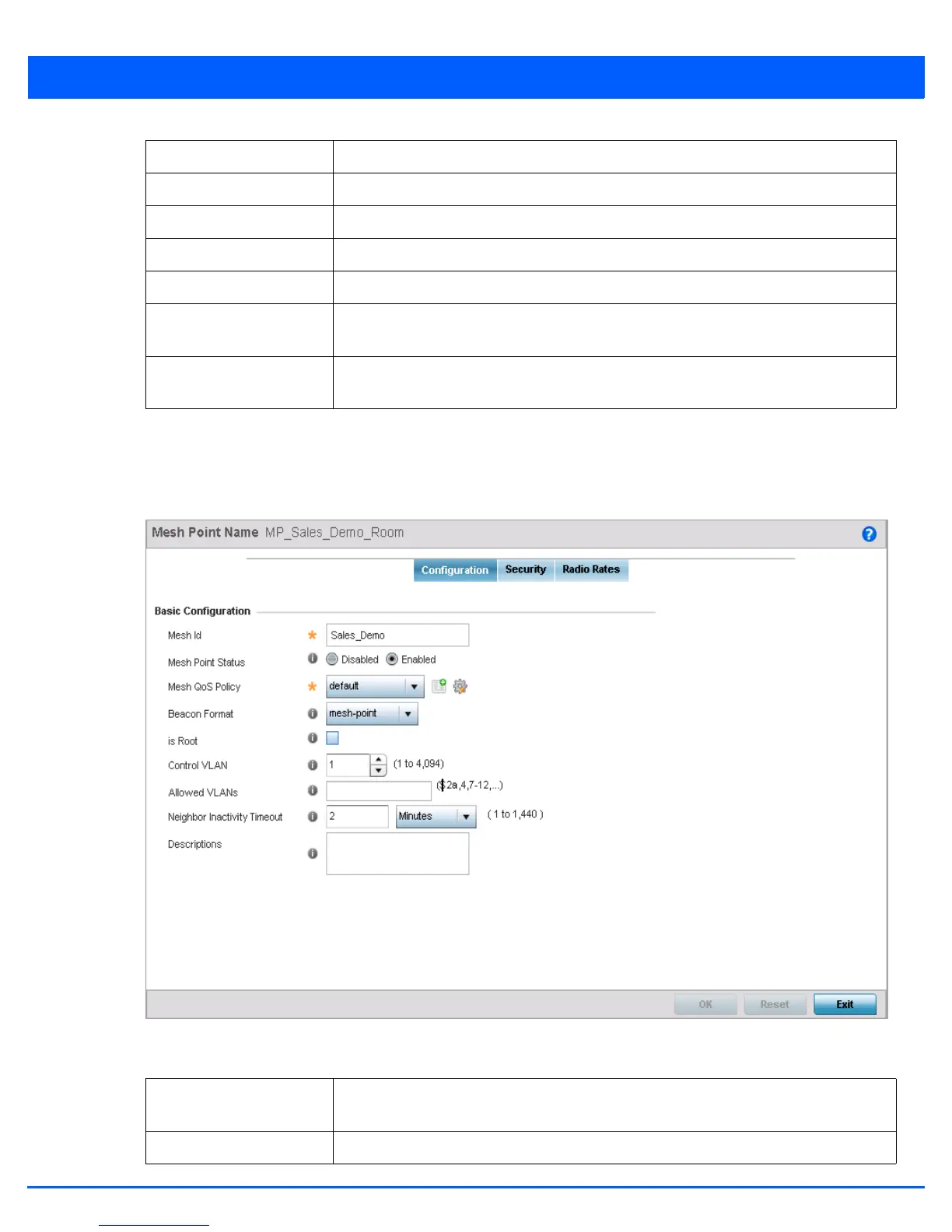 Descriptions Displays any descriptive text entered for each of the configured mesh points.