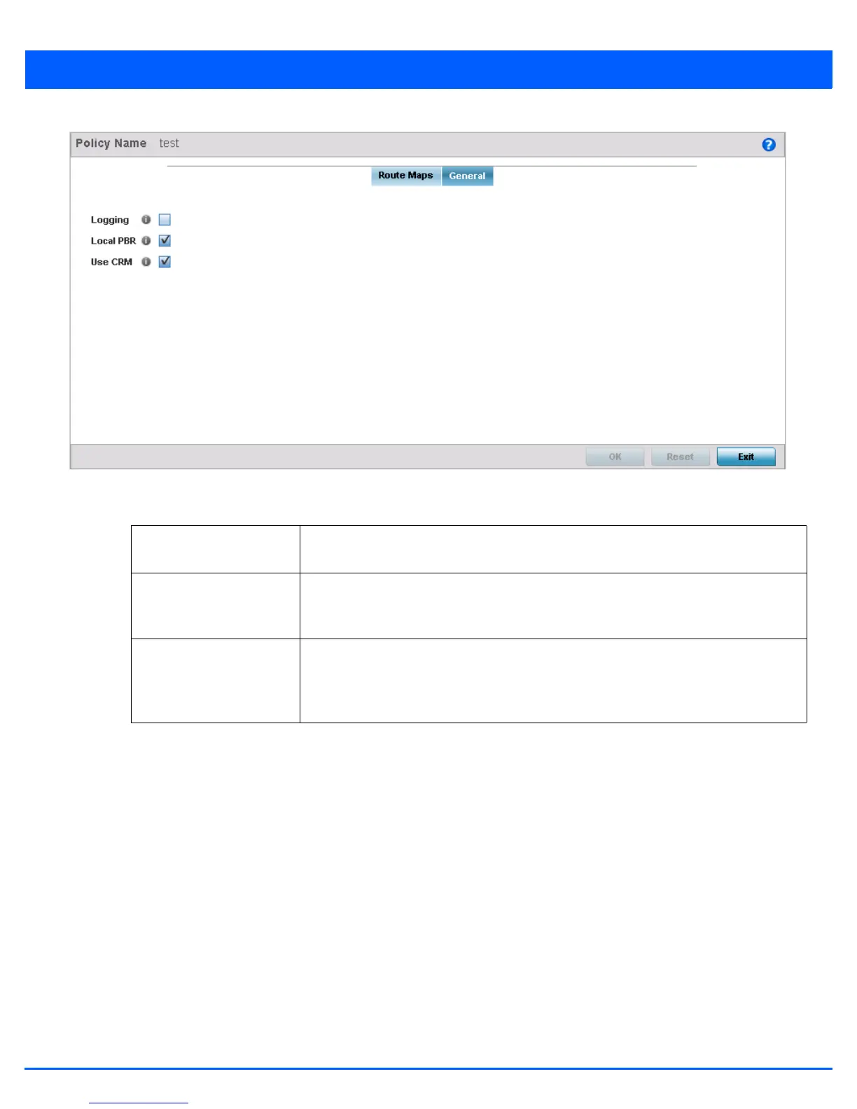 14. Select OK to save the updates to the route-map general configuration. Select Reset to revert to the last saved