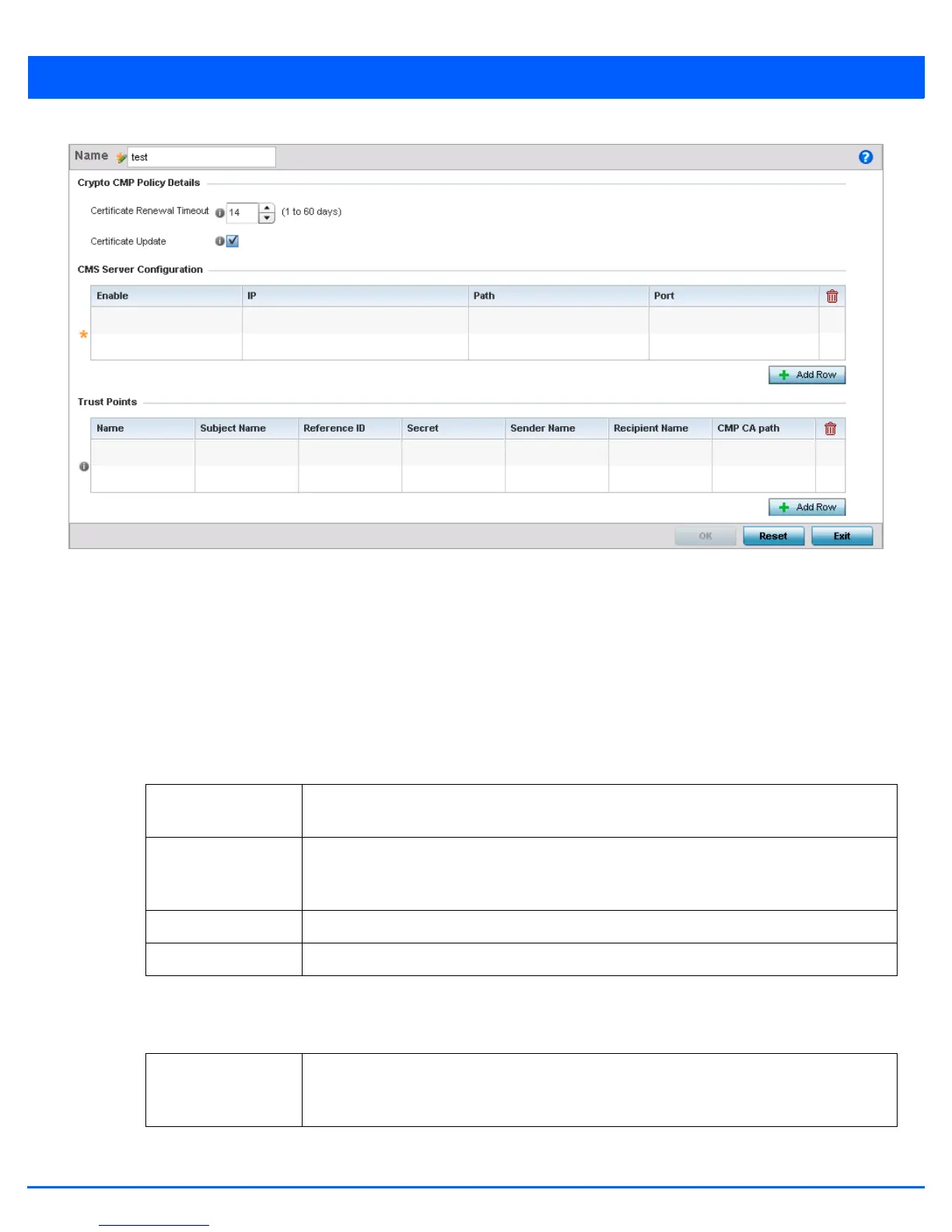 5. If creating a new Crypto CMP policy assign it a Name up to 31 characters to help distinguish it.