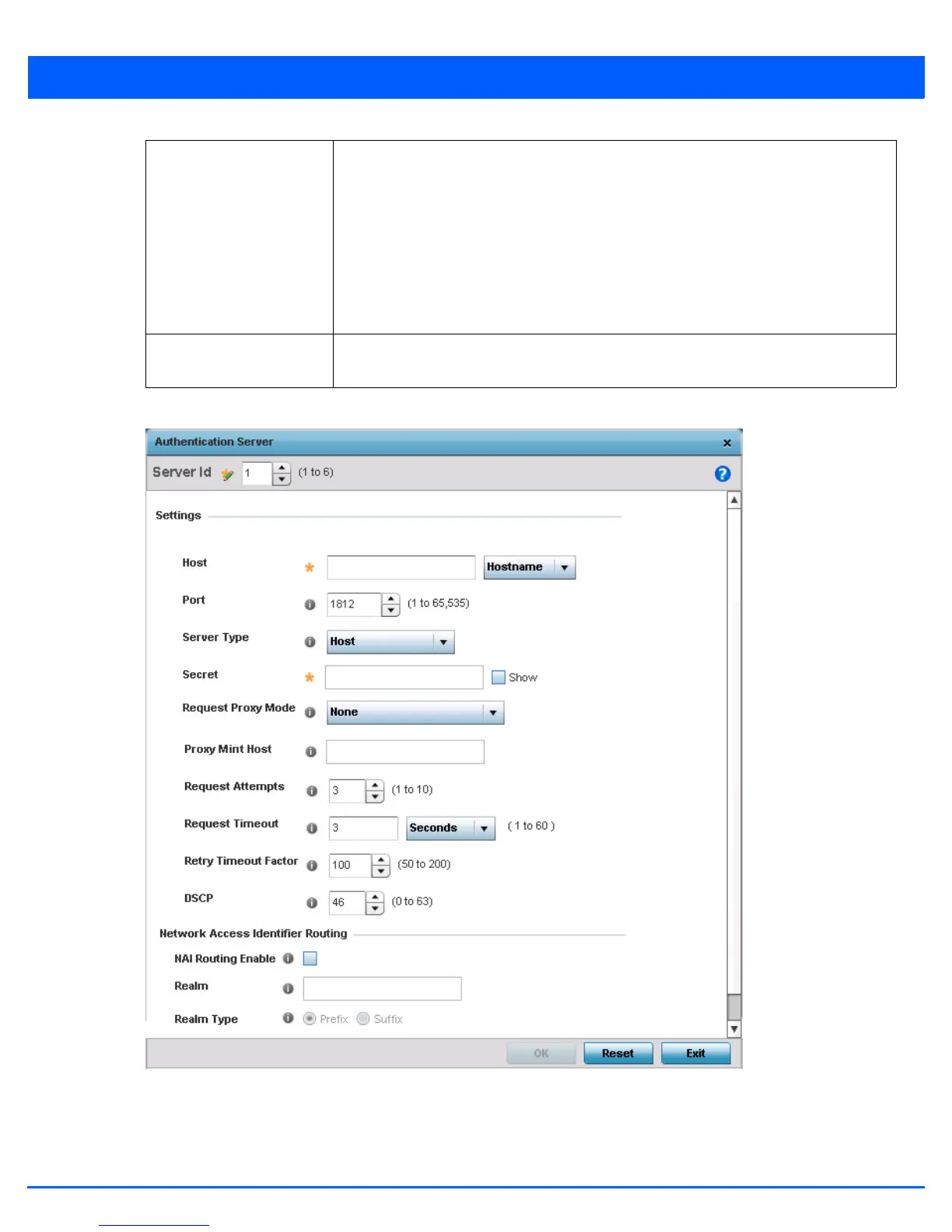Figure 7-11 AAA Policy - RADIUS Authentication tab - Authentication Server screen