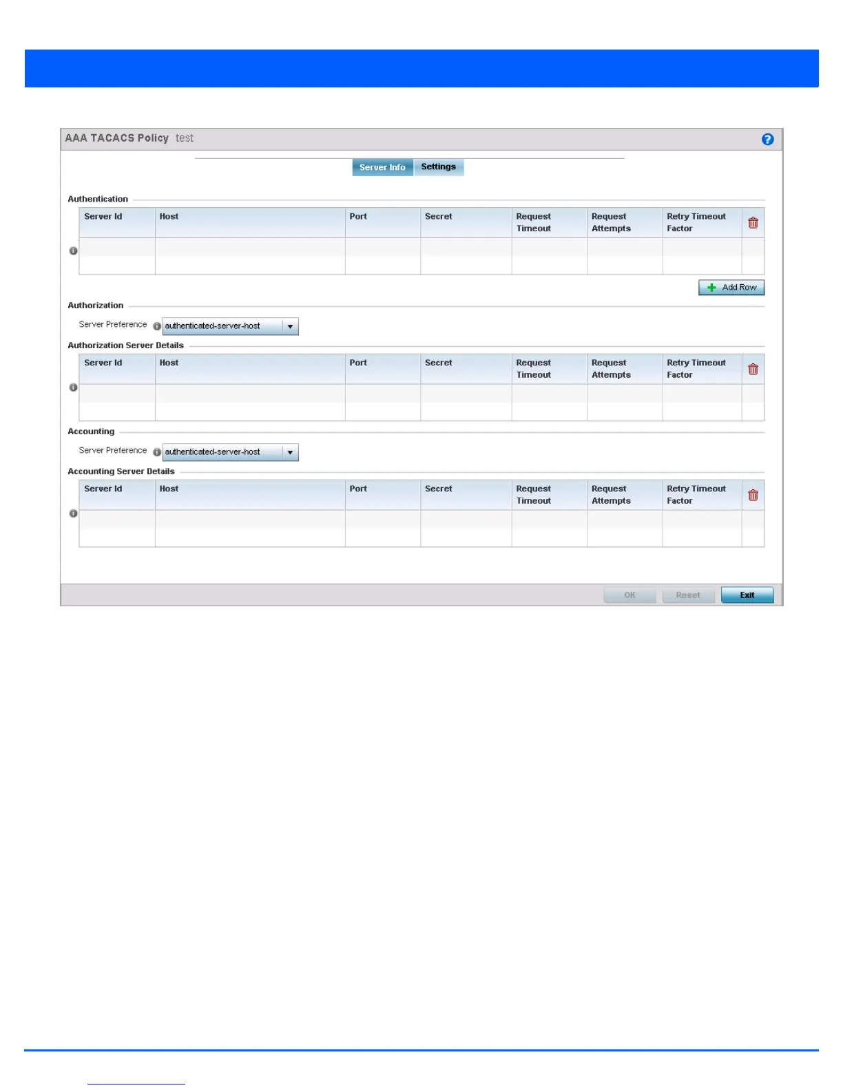 Figure 7-16 AAA TACACS Policy - Server Info tab