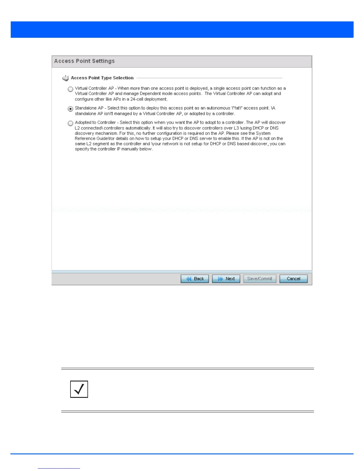 NOTE: If designating the access point as a Standalone AP, Motorola Solutions