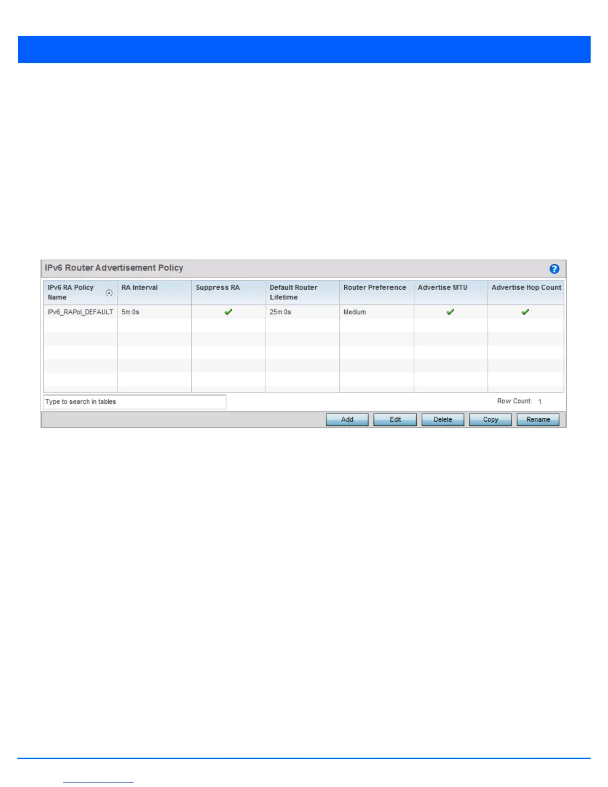 1. Select Configuration > Network > IPv6 Router Advertisement Policy.