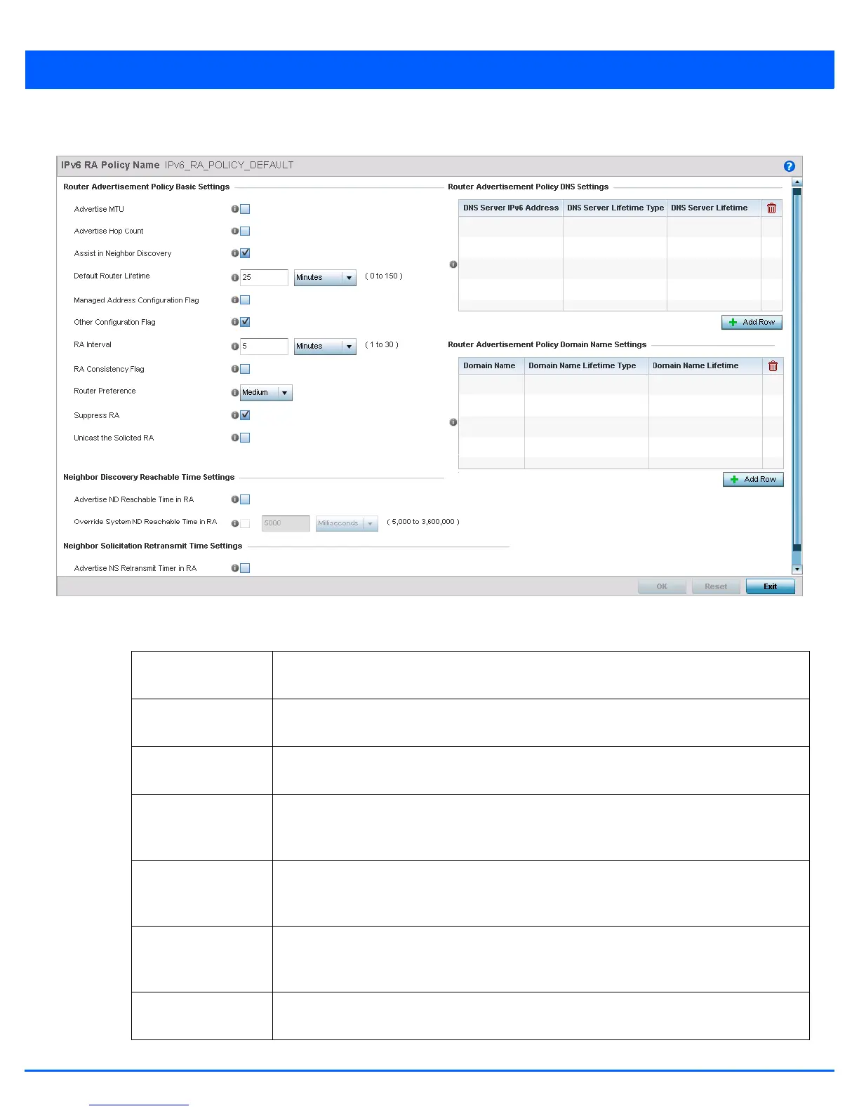 Figure 7-25 Network IPv6 RA Policy Name screen
