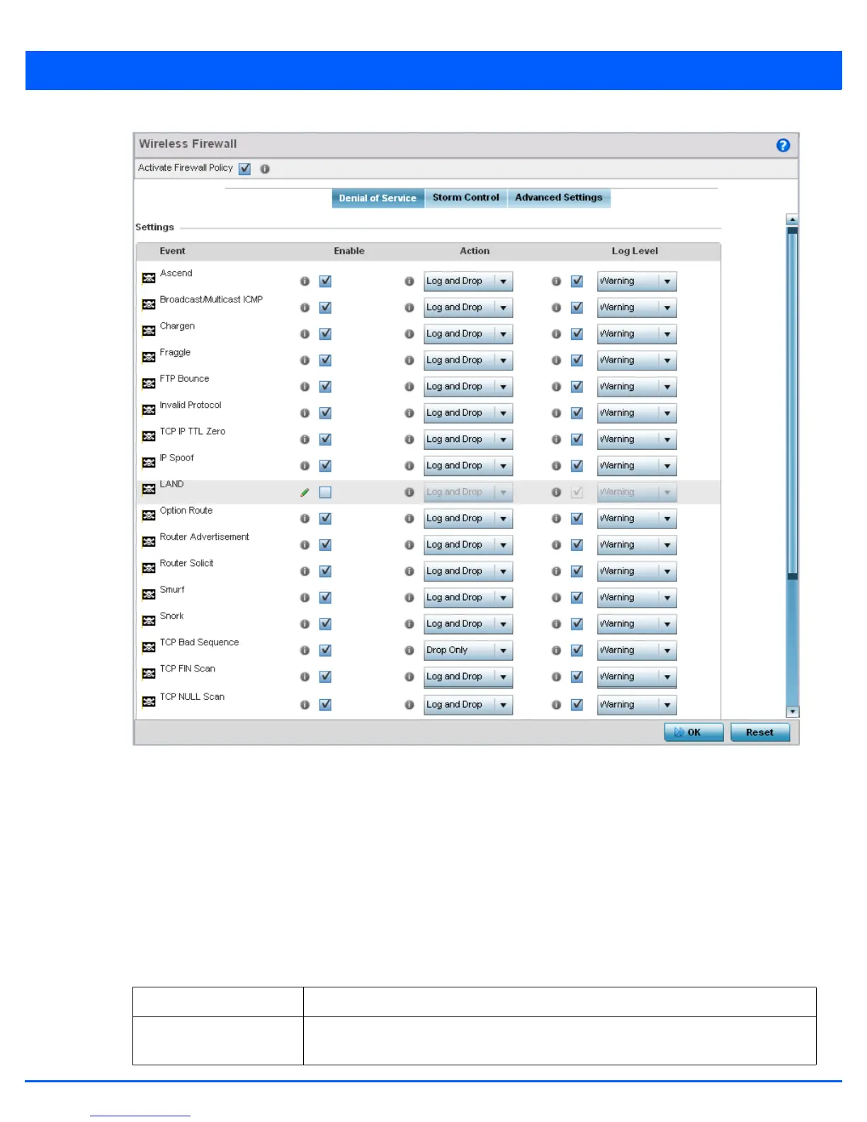Enable Select Enable to set the firewall to filter the associated DoS attack based on the selection