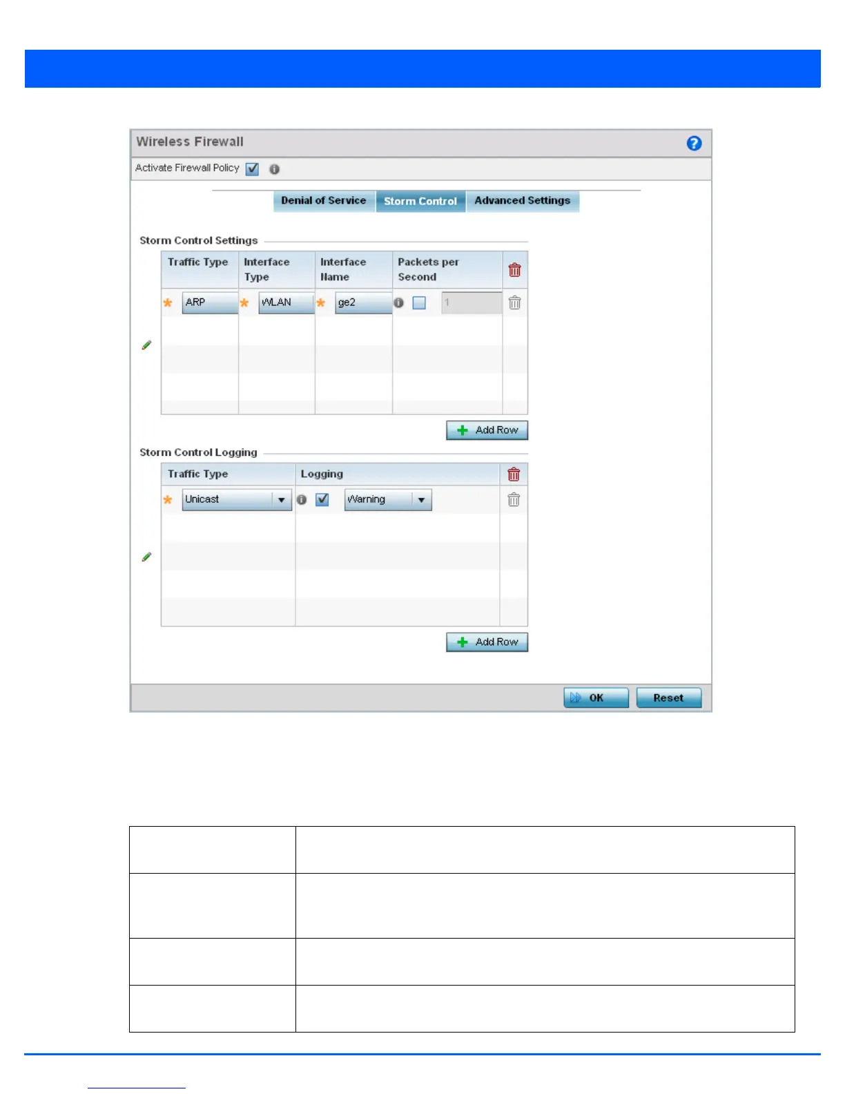 Traffic Type Use the drop-down menu to define the traffic type for which the Storm Control