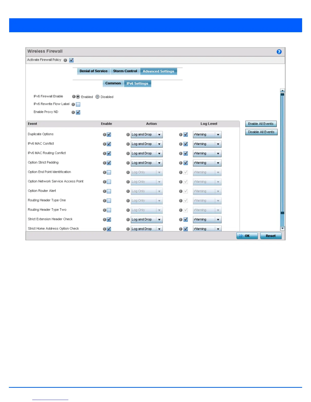22. Refer to the IPv6 Firewall Enable option to provide firewall support to IPv6 packet streams. This setting is enabled by