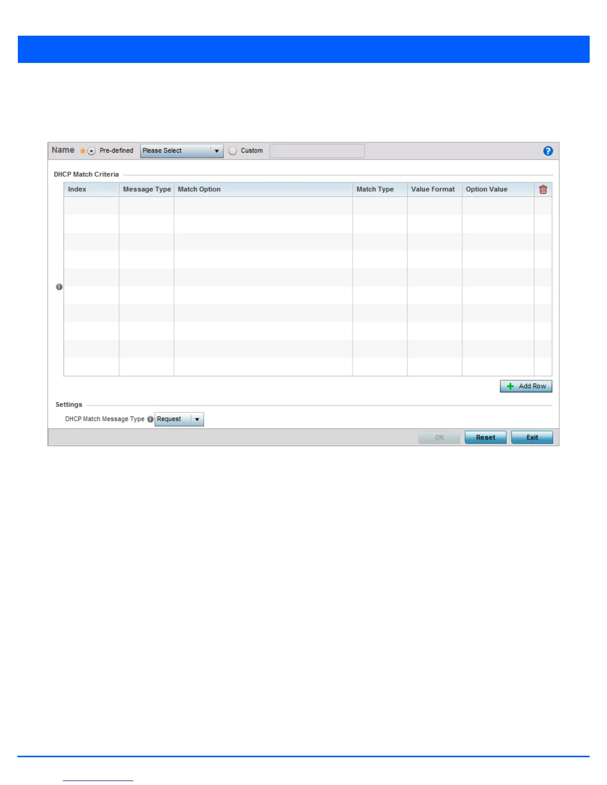 is selected from the drop-down menu, the DHCP Match Criteria field is populated with the fingerprints for the selected