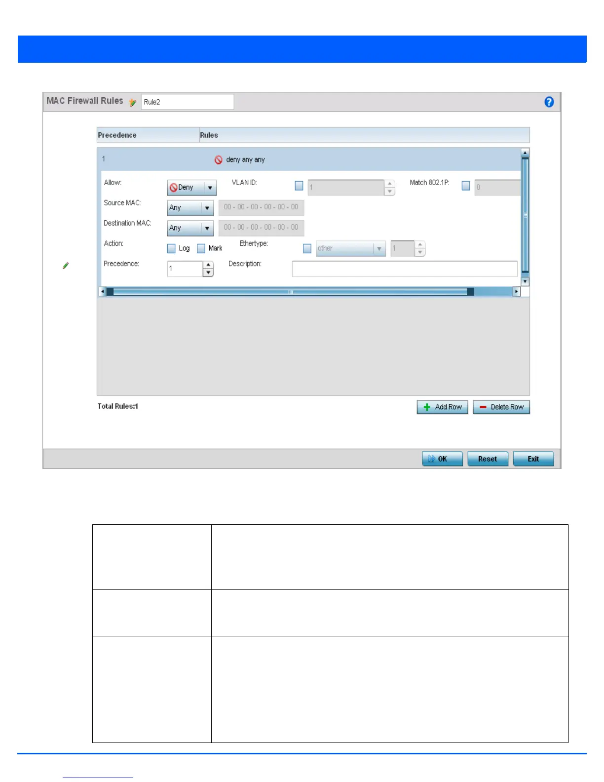 Allow Every MAC firewall rule is made up of matching criteria rules. The action defines what to