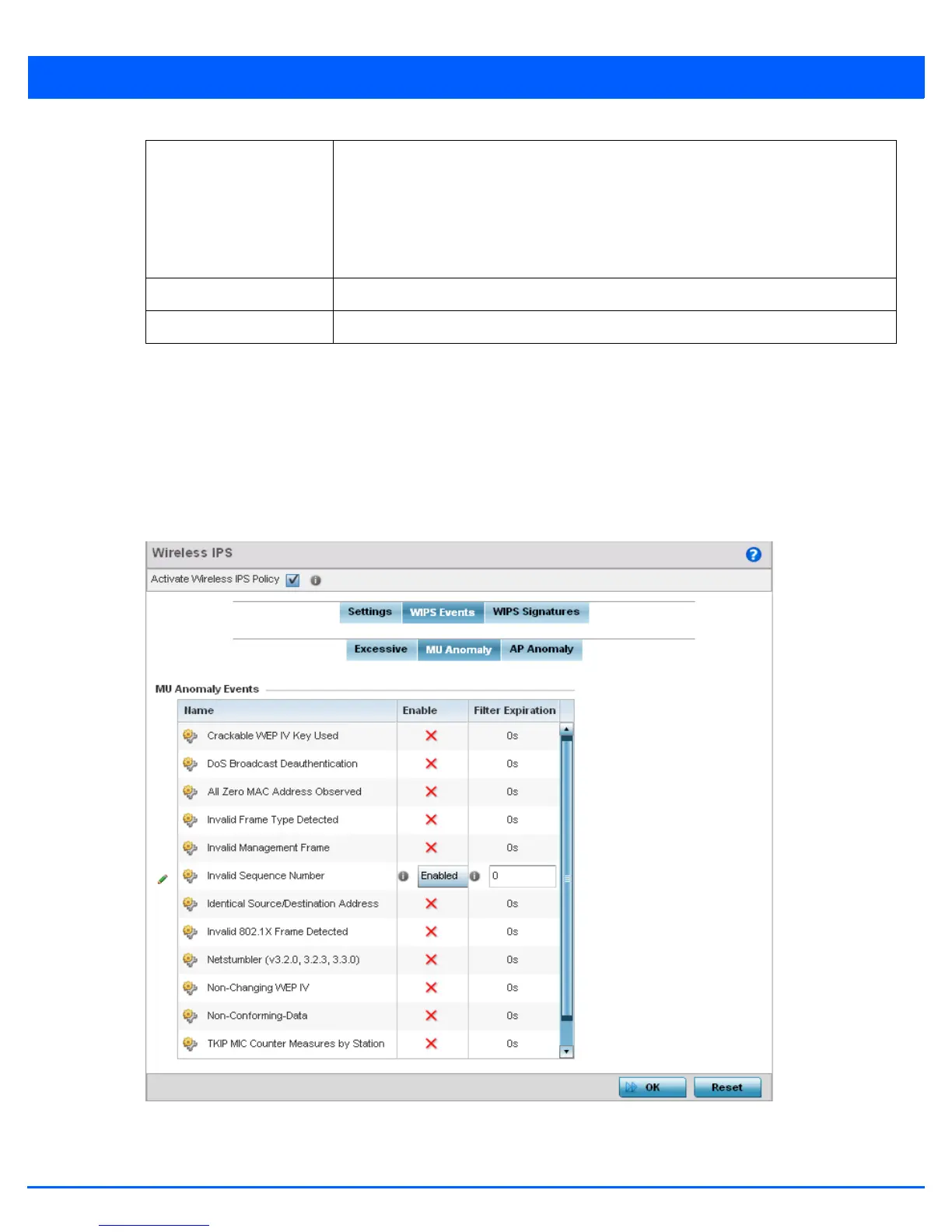 13. Select the MU Anomaly tab. Ensure the Activate Wireless IPS Policy option remains selected to enable the screen’s