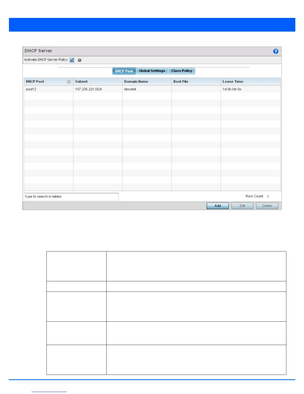 DHCP Pool Displays the name assigned to the network pool when created. The DHCP pool name