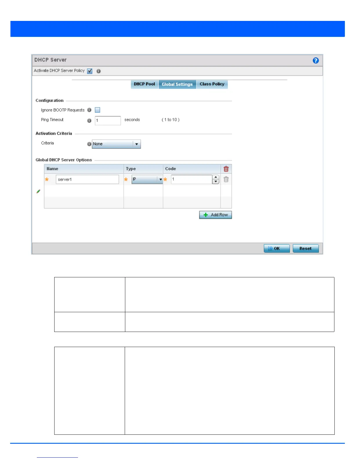 Ping Timeout Set an interval (from 1 -10 seconds) for the DHCP server ping timeout. The timeout is used