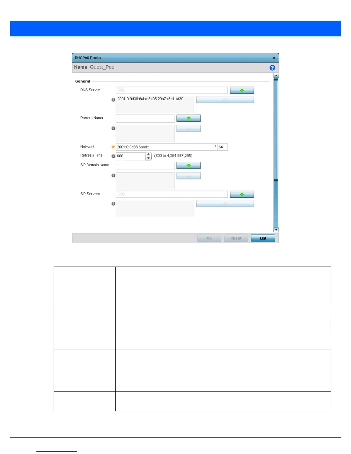 Refresh Time Use the spinner control to set the time, in seconds, between refreshes of the DHCPv6 address