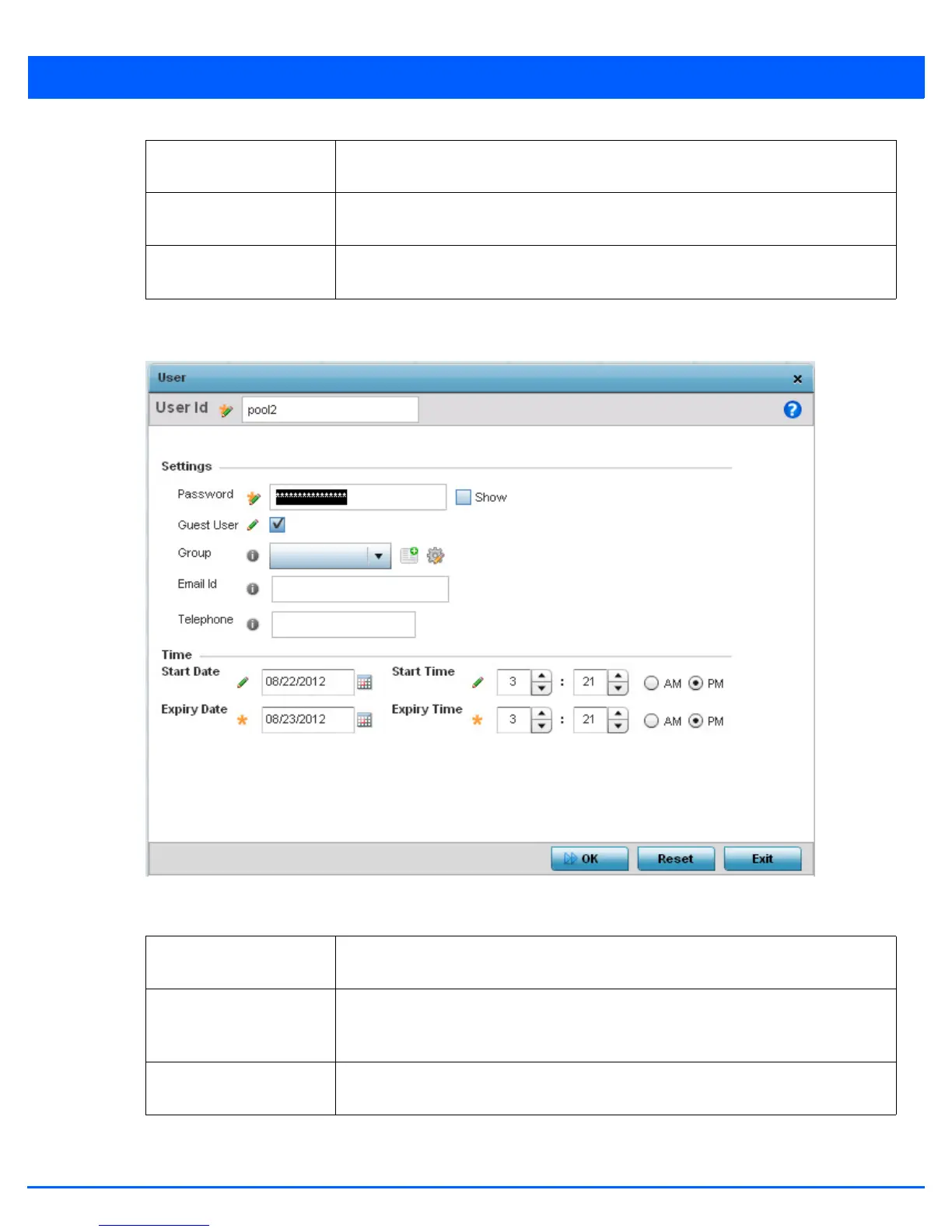 Expiry Date Lists the month, day and year the listed user Id can no longer access the internal RADIUS