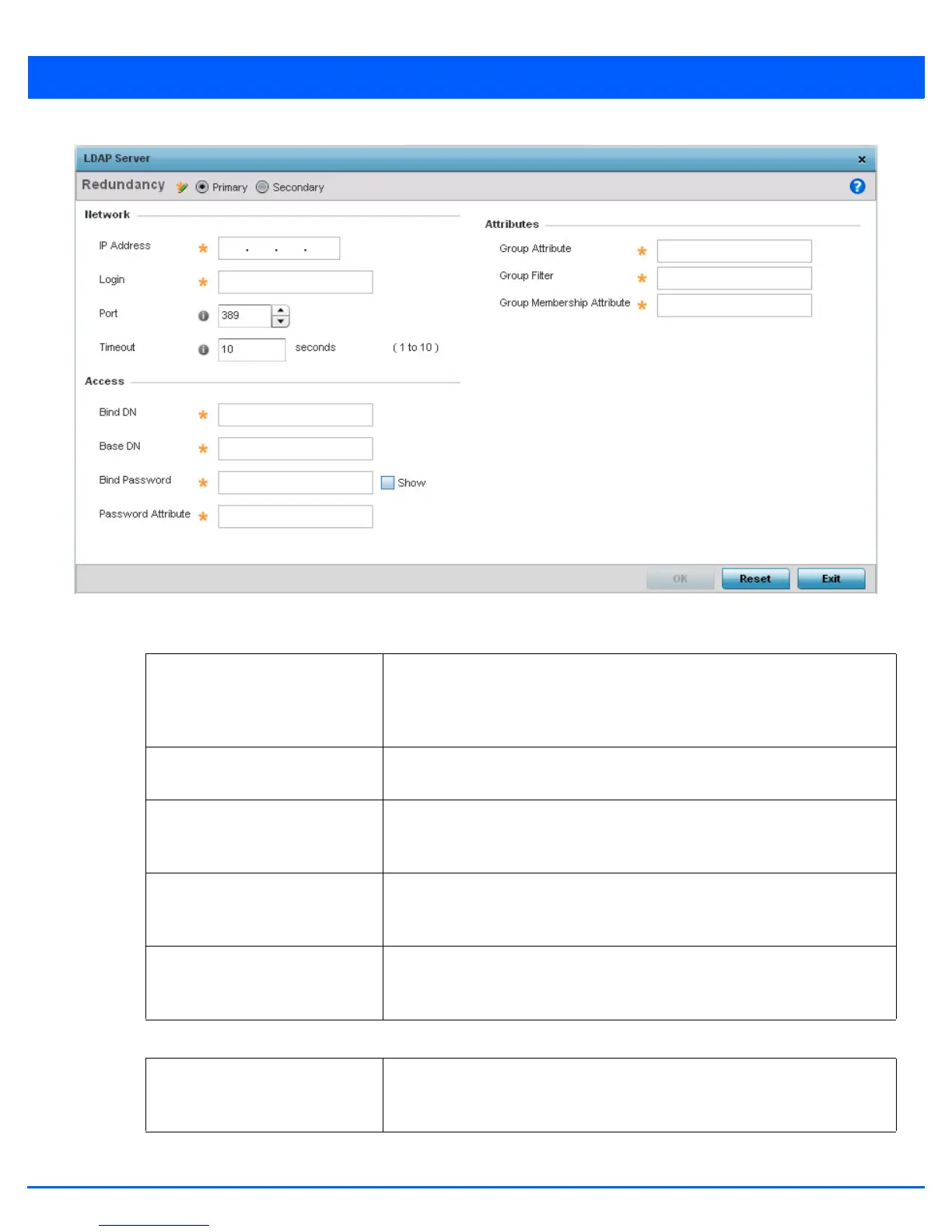 Redundancy Define whether this LDAP server is a primary or secondary server resource.