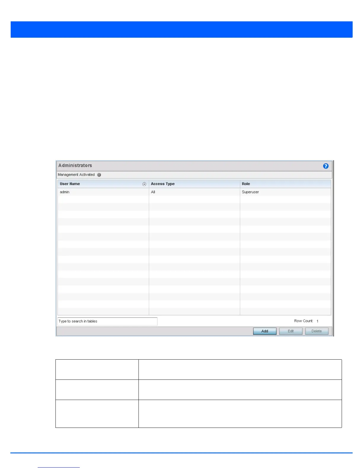 the access point managed network. New administrators can be added and existing administrative configurations modified or