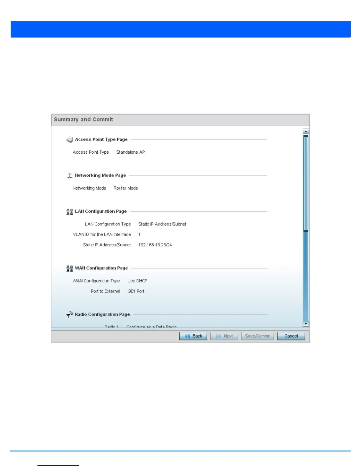 If the configuration displays as intended, select Save/Commit to implement these settings to the access point. If additional