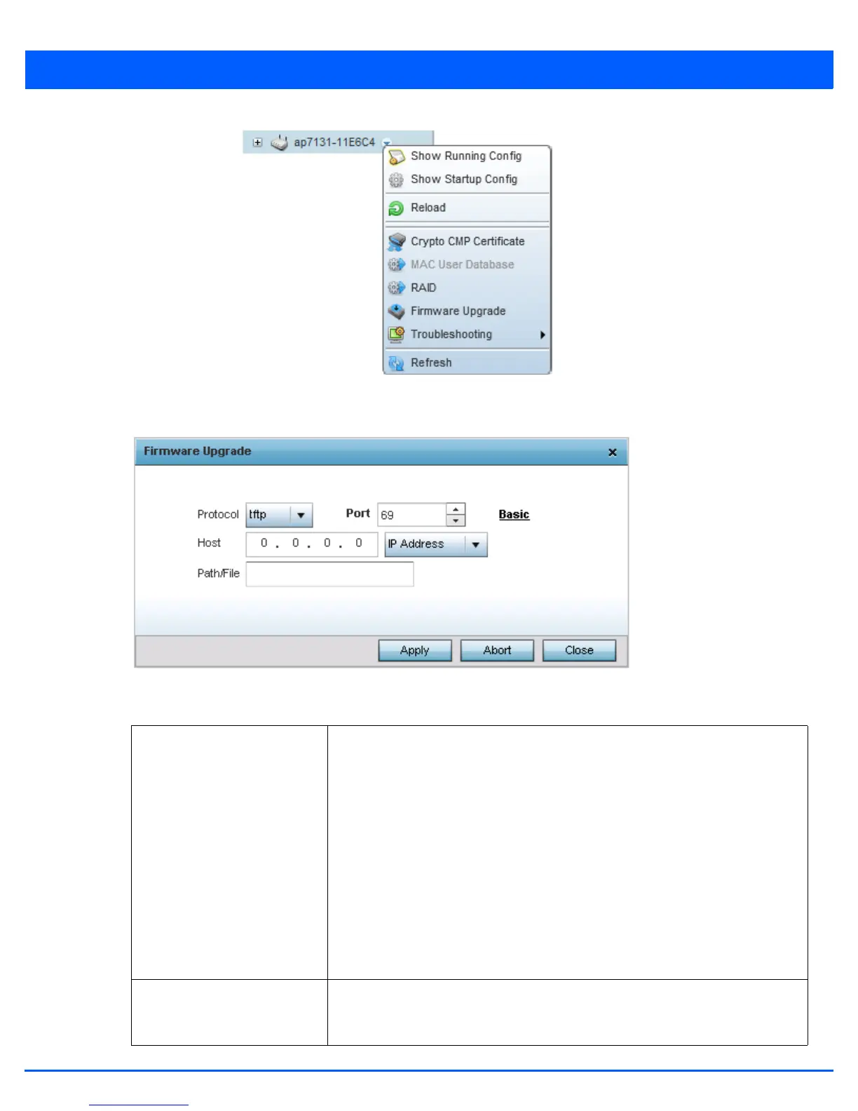 Protocol Select the protocol used for updating the firmware. Available options include:
