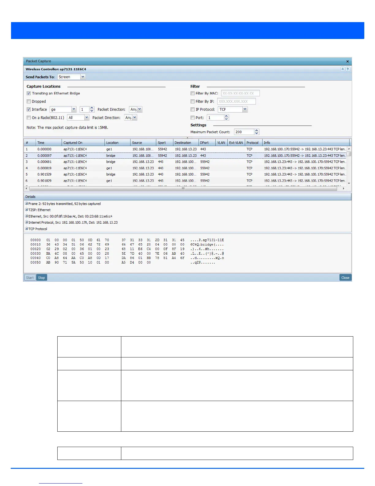 Filter by MAC Select this to enable filtering the capture of packets based on the MAC address of a device.