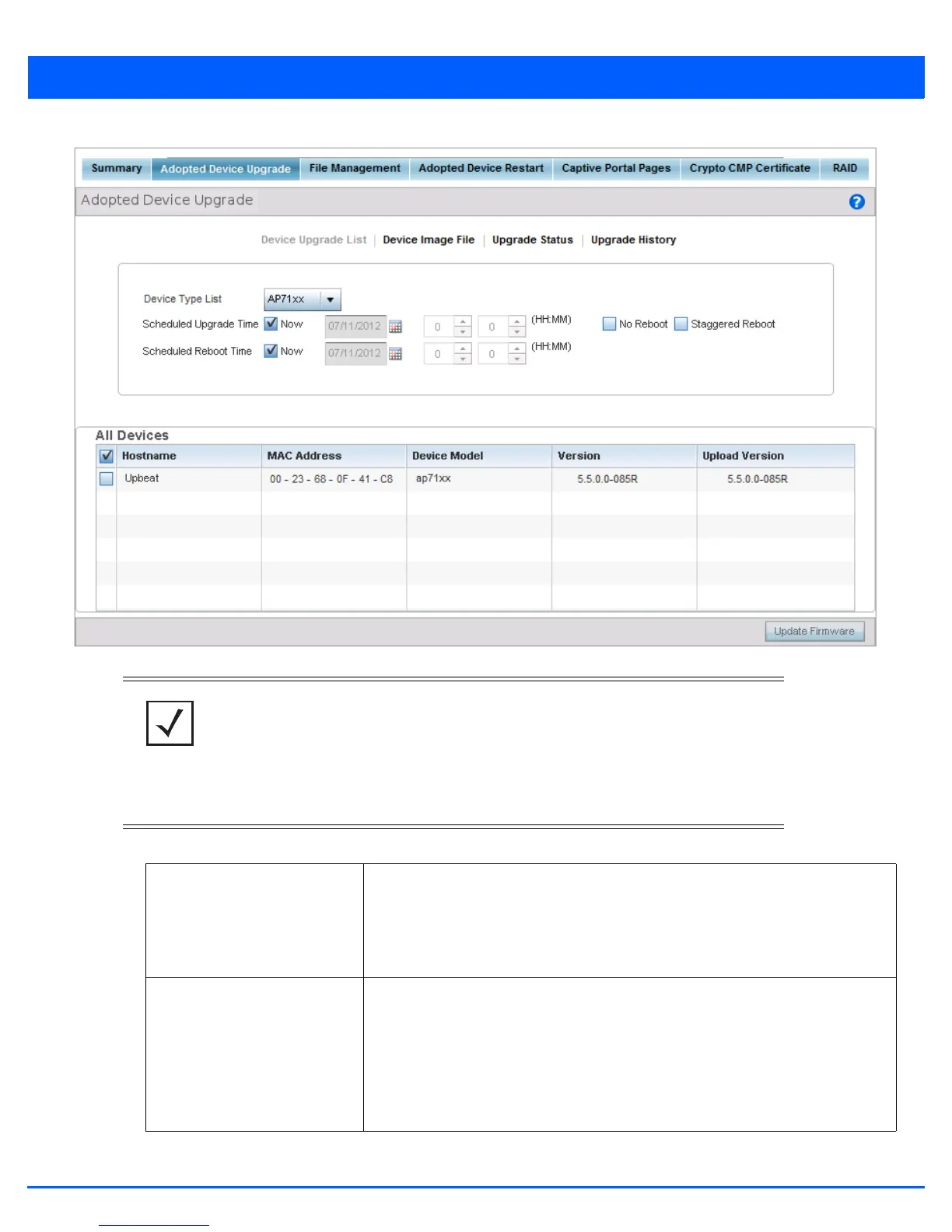 an upgrade is made from an elected RF Domain Manager device. There’s also an addi-