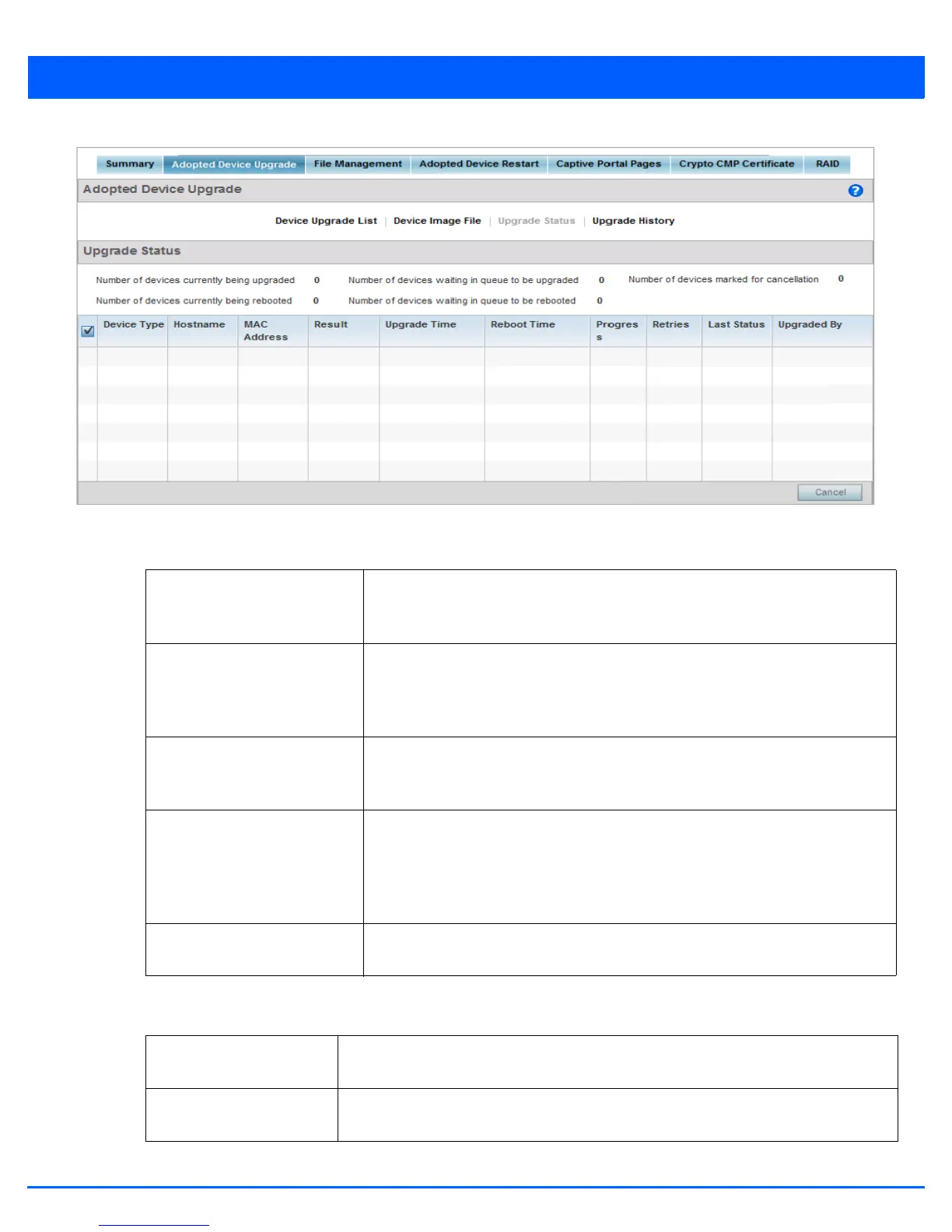 Hostname Lists the factory encoded MAC address of a device either currently upgrading or in the